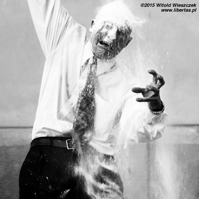 Chyba pierwszy raz w życiu widziałem na żywo aktora, który tak genialnie grał za pomocą własnego ciała. Pewnie mógłby wyrzucić wszystkie rekwizyty, a jego twarz i reszta w zupełności by wystarczyły. Na naszych oczach z człowieka w garniturze wychodzi jakaś zupełnie inna, bardziej pierwotna, szokująca momentami postać...