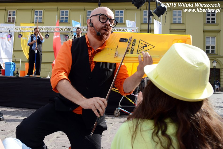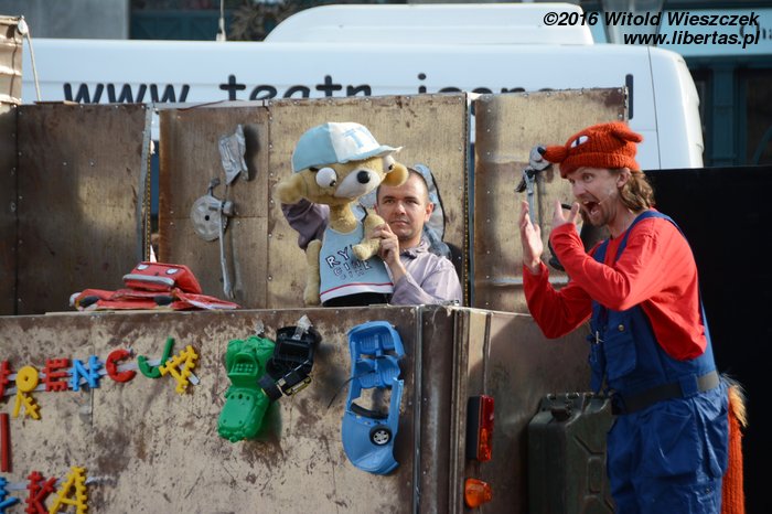 Wybór, od jakiego przedstawienia zacząć festiwalową przygodę, nigdy nie jest prosty, zwłaszcza że propagandowa ulotka zachwala wszystkie spektakle, a z doświadczenia wiem, że zderzenie pochlebnych recenzji z rzeczywistością potrafi sprawić żądnemu wrażeń widzowi nie lada zawód. W tym roku Festiwal udało mi się zacząć bardzo dobrze, a wszystko dzięki Braciom Jashgawronsky i ich śmietnikowi. Występ przyrównałbym do popisów tria Pawła Morocco sprzed roku – barwny, udźwiękowiony spektakl komediowy dla widza w każdym wieku. Twórcze wykorzystanie śmieci jako instrumentów muzycznych wraz z cyrkowymi i muzycznymi talentami, podarowały wszystkim widzom niezapomnianą godzinę zabawy, udowadniając, że jeśli komuś w duszy gra muzyka, to instrumenty znajdą się wszędzie. Publiczność nie uciekała, owacje były gromkie, to chyba najlepsza recenzja i najwyższa dla artystów nagroda.