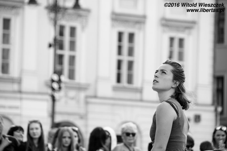Kolejne przedstawienie będzie okazją do ponarzekania na organizatorów. Festiwal międzynarodowy, czyli duży i gości, mam nadzieję, spodziewa się sporo... Krakowski rynek jest ponoć jednym z największych w Europie, a więc możliwości też proporcjonalne... A mimo to bardzo często zobaczyć niczego się nie da. Wiadomo, że niektóre przedstawienia, zwłaszcza te duże, wieczorne, prezentowane tylko raz, przyciągną większą publiczność. Wystarczyłoby powiększyć scenę, o kilka, a może nawet kilkanaście metrów w każdą stronę, wyraźnie oznaczyć powiedzmy 3-metrową strefę dla siedzących i dalej, za linią dla tych, którzy wolą stać. Prawdopodobnie miejsce znalazłoby się dla każdego. A może nie ma żadnych wytycznych i sceny każdorazowo organizują sobie zbyt skromni artyści? Nie mam pojęcia, kto za ten bałagan ponosi bezpośrednią odpowiedzialność, ale wiem, że co roku powoduje to napięcia i nieraz widziałem już kłótnie o to, kto, co, komu zasłania. Do tego dochodzą ochroniarze, którzy często nazbyt poważnie traktują swoją pracę. Reasumując: niczego dobrego na temat „Poematu o Słońcu i Księżycu” powiedzieć nie mogę, bo nic nie widziałem i po kilkunastu bezsensownych minutach poszedłem na lody. Lody były bardzo smaczne. Polecam lodziarnię na Placu Szczepańskim.