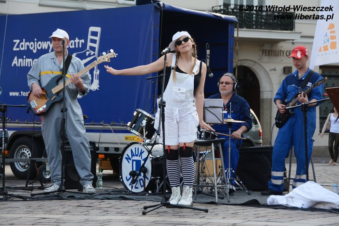 Na rynku Podgórskim ustawiono, być może inspirowane tytułem piosenki Perfectu, objazdowe nieme kino... Nie sądzę, żeby wybór Rynku Podgórskiego był trafny. Na pewno jego oddalenie od głównych festiwalowych scen nie sprzyjało frekwencji, a w dodatku jeszcze bardziej komplikowało i tak trudną sztukę docierania na przedstawienia o czasie. Naprawdę coraz trudniej zrozumieć mi niektóre decyzje organizatorów. Tytuł i opis był na tyle intrygujący, że przybyliśmy, zobaczyliśmy i nie żałujemy! Choć, prawdę mówiąc, spodziewałem się udźwiękawianego na żywo czarno-białego filmu, a była to raczej sprawnie zmontowana wiązanka filmowych i muzycznych cytatów, zaprezentowana z odpowiednią domieszką humoru. Gdybym miał się do czegoś przyczepić, to powiedziałbym, że zespół mógłby grać trochę równiej, ale ogólne wrażenie było tak pozytywne, że drobne niedociągnięcia zupełnie odbioru nie zakłócały.