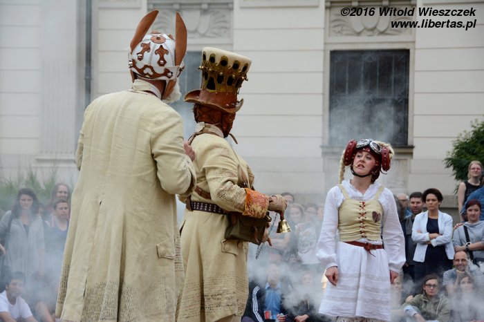 Tym razem Teatr Snów sięgnął po powieść kaszubskiego pisarza Aleksandra Majkowskiego „Życie i przygody Remusa”, której – przyznam się bez bicia – nie znam, a bez odpowiedniego wprowadzenia chyba trudno by mi było intencje autorów odczytać. Myślę, że przenoszenie na ulicę treści książek i próby wyrażenia ich bez użycia słów bywają karkołomne... Skłamałbym, gdybym napisał, że Teatr Snów mnie tym przedstawieniem zachwycił, ale niektóre obrazy tworzone przez aktorów urzekały i zapadały w pamięć... Może gdybym obejrzał jeszcze raz...