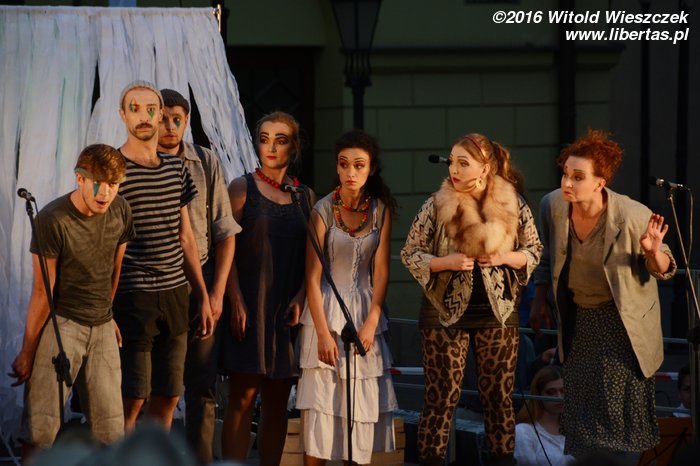To już trzeci spektakl Teatru Pijana Sypialnia, jaki miałem okazję w Krakowie oglądać. Znowu było muzycznie i tanecznie, tym razem o dwóch wsiach, o tym, co je łączy, co je dzieli, a wszystko to trochę na żarty, trochę na poważnie i głęboko w ludowej tradycji. Warta odnotowania jest towarzysząca aktorom muzyka na żywo, o czym może łatwo zapomnieć, gdy nasz wzrok przykuwają furgające sukienki... Festiwalowy czwartek był dla nas zdecydowanie najbardziej udanym dniem...