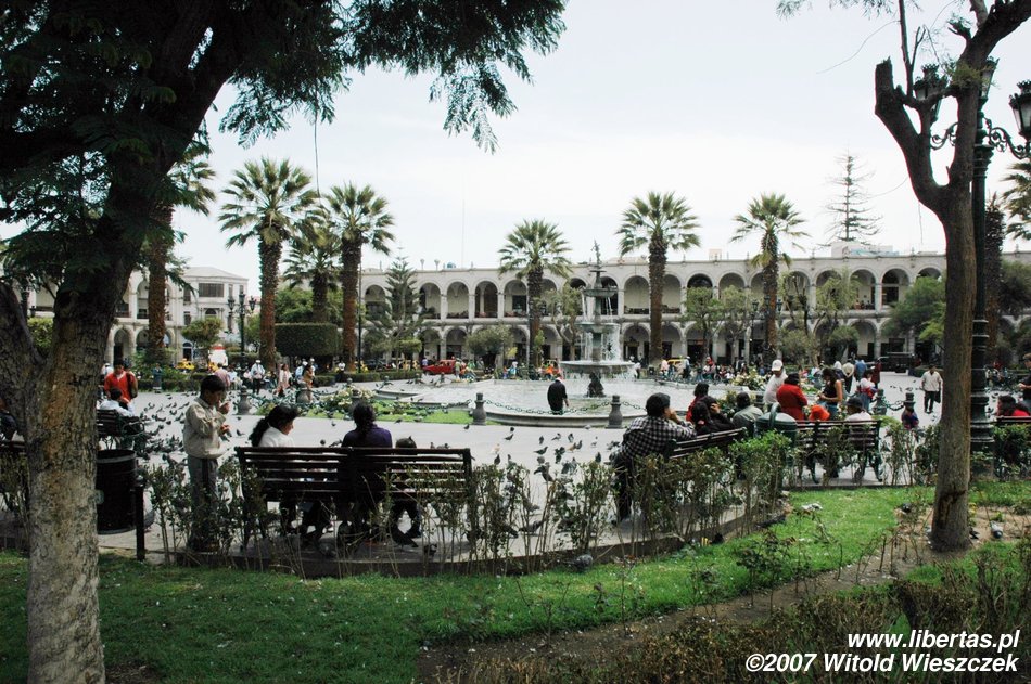 Przemierzyliśmy kolejne 566 km i około dziewiątej dotarliśmy do Arequipy, drugiego co do wielkości miasta w Peru. Stara część miasta jest po prostu zachwycająca, z czego zresztą mieszkańcy w liczbie 948 390 (stan na rok 2007) są bardzo dumni...Arequipa – Białe Miasto nieopodal wulkanu