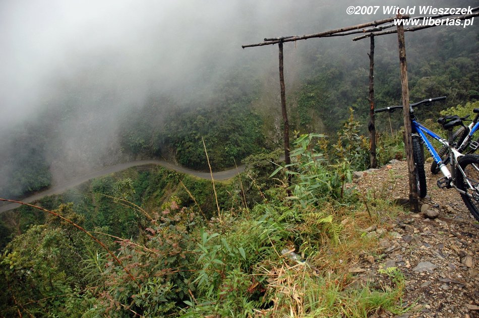 Rano jedziemy z La Paz na przełęcz La Cumbre leżącą na wysokości 4725 m n.p.m.. Tutaj zaczyna się Droga Śmierci, o której towarzyszący nam Boliwijczyk z dumą mówi „najniebezpieczniejsza droga świata”. Do niedawna ginęło na niej 200–300 osób rocznie...Droga śmierci do Coroico i Pisco de Coca