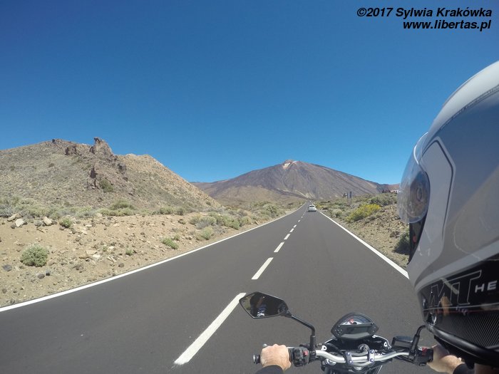 Pierwszy cel naszej kanaryjskiej, motocyklowej przygody to Park Narodowy Teide. Znajduje się tam najwyższy szczyt Hiszpanii – Pico del Teide. Jest on zarazem wciąż czynnym wulkanem. Położony na wysokości 3718 m n.p.m. Cały teren parku ukształtowały siły wulkaniczne. Zastygła lawa, bazaltowe formacje skalne, rumowiska, ogromna przestrzeń, na której prawie nic nie rośnie, prócz kaktusów i nielicznych porostów. Krajobraz niczym z Marsa. W 2007 roku park wpisano na listę światowego dziedzictwa UNESCO.