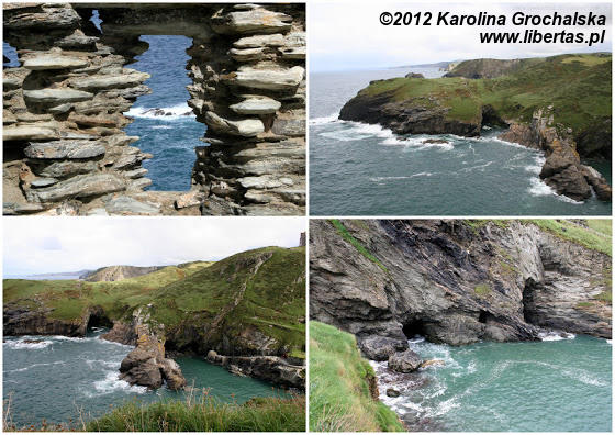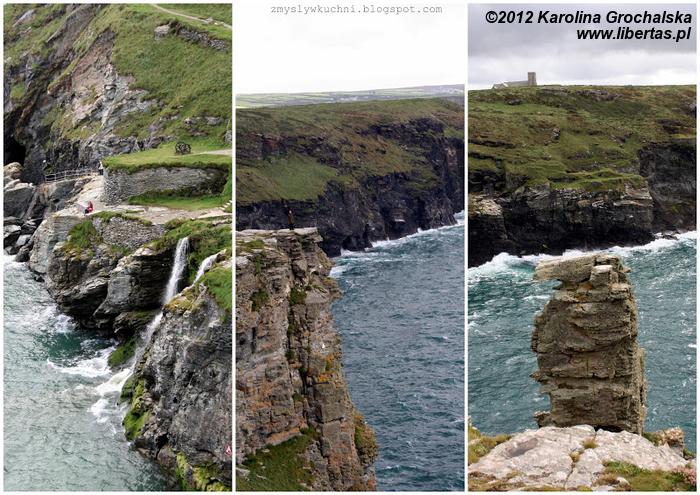A skoro o Tintagel mowa, to oprócz kilku godzin chodzenia po jednym z bardziej spektakularnych miejsc, jakie w życiu widziałam, dla wielbicieli historii być może nieco naciągana będzie się wydawać opowieść, że prawdopodobnie urodził się tam legendarny król Artur, ale faktem jest, że można tam znaleźć pozostałości po rezydencji, którą z pewnością zamieszkiwał ktoś bogaty i wpływowy. Bez względu na ten aspekt lokalizacja jest tak cudowna, że warto tam jechać tylko ze względu na ten kawałek wybrzeża. Na południe od Tintagel wiedzie trasa dla piechurów (tuż przy efektownych klifach) do plaży, którą zobaczyliśmy w pierwszym dniu pobytu, i od razu się w niej zakochaliśmy – Trebarwith Strand. (Mieliśmy zresztą szczęście mieszkać 7 mil od Tintagel i tej plaży, tuż obok Bodmin Moor). Jedna z najbardziej czystych plaż w UK, jeśli chodzi o wodę, drobny piasek, skały i jaskinię, a także przyjemny pub nad nią („The Port William”), gdzie zjedliśmy całkiem przyzwoitą rybę z frytkami, a także mieliśmy okazję pierwszy raz spróbować lokalnych piw – tak, jest to miejsce warte odwiedzenia. W czasie przypływu plaża znika całkowicie pod wodą, możecie to spokojnie obserwować z góry, sącząc lokalne trunki.