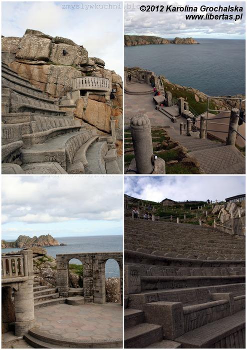 Według mnie miejscem, które absolutnie trzeba zobaczyć w Kornwalii, jest The Minack Theatre. Amfiteatr, który powstał z inicjatywy prywatnej osoby – kobiety, która nie bała się przemienić swoich marzeń w rzeczywistość; kobiety, która sama nosiła worki z piaskiem i cementem na zbocze klifu, aby zbudować miejsce, które dziś – dwadzieścia lat po jej śmierci – nadal jest jednym z najbardziej rozpoznawalnych teatrów na świecie. Rowena Cade stworzyła teatr, w którym w niesamowitej scenerii wystawiane są m.in. sztuki Szekspira. Wizyta w teatrze stylizowanym na antyczny przeniesie Was niemal w czasy starożytne. Z teatru można zejść dość stromym zboczem na przepiękną plażę.