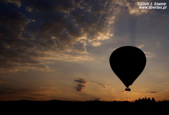 Komu nie wystarczają księżycowe krajobrazy widoczne z perspektywy wielbłąda czy osiołka, ten może się wznieść jak ptak i obejrzeć wulkaniczny las we wschodzącym słońcu. Niestety, żeby to zrobić, trzeba mieć po pierwsze 150 euro, po drugie dużą determinację, gdyż pobudka na lot balonem jest o nieludzkiej godzinie – 4:30. A dzień wcześniej na ogół organizowany jest wieczór turecki wraz z tańcem brzucha i tańcem derwiszów. Ale naprawdę warto! Fascynujące jest właściwie wszystko. Od momentu, gdy wyjeżdżamy busikiem na pole wylęgarni balonów, po niesamowicie precyzyjne lądowanie. Przed startem jesteśmy częstowani ciastem, kawą i herbatą. W tym czasie kilkanaście ekip przygotowuje balony do lotu. Nasz jest szary z wielkim logo firmy organizującej przelot. Mamy szczęście, bo wprawdzie nasz balon nie prezentuje się nadzwyczajnie, ale za to my mamy widok na pozostałe, różnokolorowe balony, tak piękne, jak rozrzucone po niebie słodkie pastylki: miętowe, truskawkowe, jagodowe, w kolorze coca-coli. I pilot trafił nam się przecudny. No, nie o urodzie mówię, chociaż żeńska część wycieczki aprobująco mruczała w wielu językach, ale muszę przyznać, że prowadził balon nie tylko pewnie, lecz także z humorem i werwą opowiadał o Kapadocji. Zwracał uwagę na to, co można sfotografować, przytaczał anegdoty, a w dodatku... namówił nas do złego. Podczas gdy inni zwiedzali wnętrza kanionów, my opuściliśmy się niziutko nad czyimś sadem i bezczelnie kradliśmy morele. A potem poszybowaliśmy wysoko w górę. Podczas lądowania pilot wygłosił standardową formułę, żeby teraz lepiej w koszu przykucnąć i zostawić w spokoju aparaty fotograficzne. Ale kto by go słuchał?! Wszyscy pstrykali zdjęcie za zdjęciem i podziwiali idealne lądowanie wprost na przyczepie traktora. A muszę powiedzieć, że przyczepa była zaledwie centymetr szersza niż balonowy kosz. To tak, jakby opuszczać nitkę pół metra nad igłą i trafić za pierwszym razem w dziurkę. Tuż po tym jak przejęci wygramoliliśmy się z kosza, oblano nas szampanem, nie całym na szczęście, trochę udało się wypić, dostaliśmy imienne certyfikaty potwierdzające udział w imprezie i busik zabrał nas prosto na śniadanie do hotelu. Kto jeszcze nie był w Kapadocji i nie leciał balonem, ten niech żałuje, kto był, na pewno tu wróci.