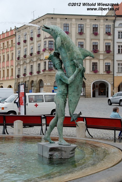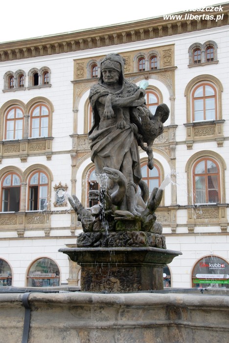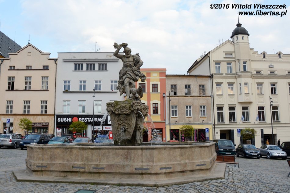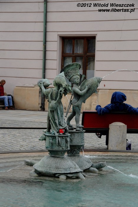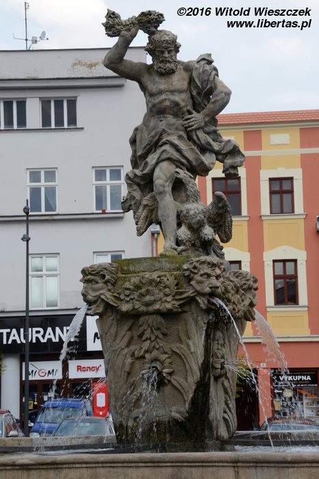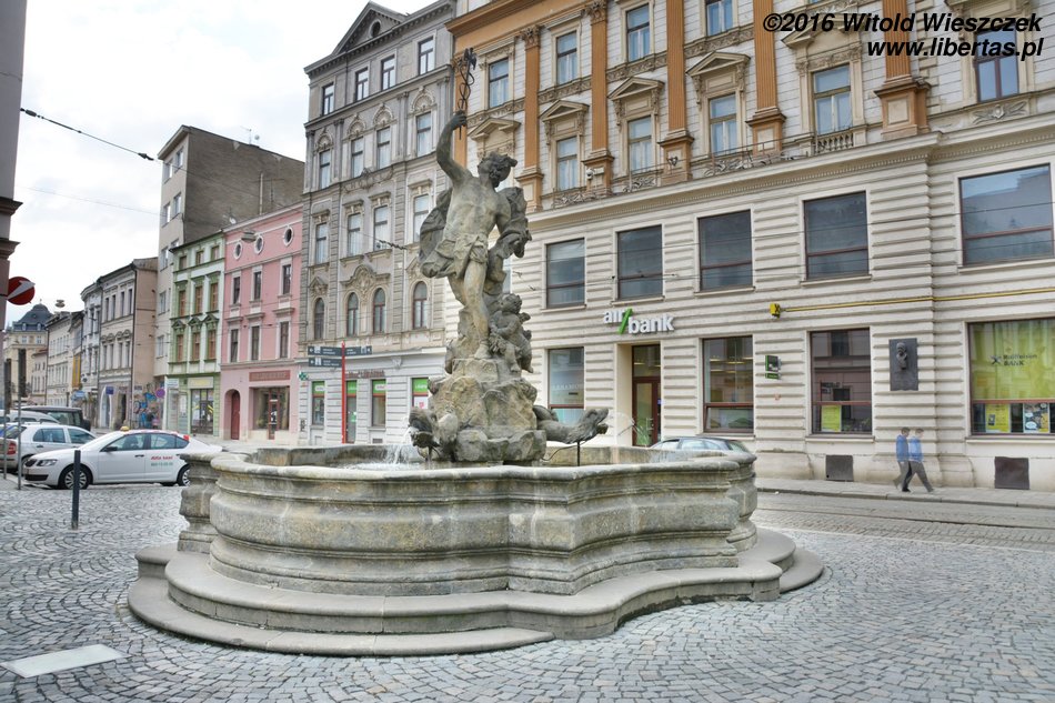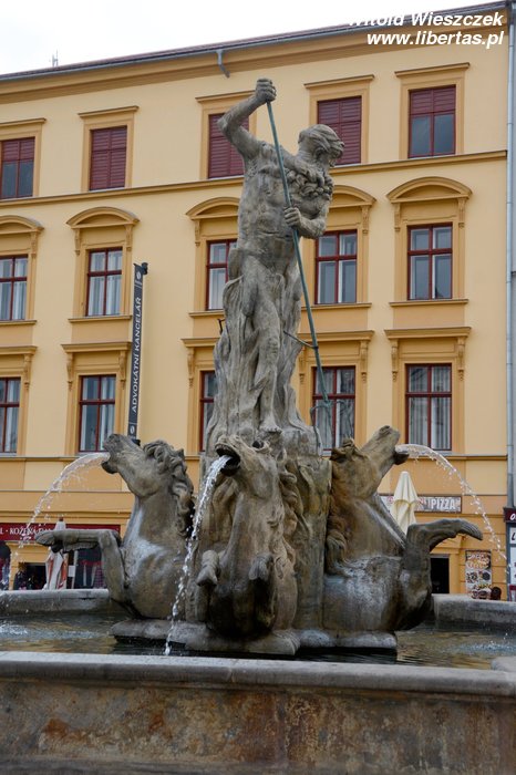 Najstarszą – bo powstałą w 1683 roku Fontannę Neptuna – rzymskiego boga morza, a ogólnie rzecz ujmując wszelkiej wody, również pod postacią deszczu czy chmur – znajdziemy na Rynku Dolnym. Fontanna jest wspólnym dziełem kamieniarza Wacława Schüllera oraz rzeźbiarza Michała Mandíka. Cztery dzikie jak woda morskie rumaki wyrywają się w cztery strony świata. Pośrodku dumnie stoi Neptun. Trzymając skierowany w dół trójząb, poskramia swój żywioł – wodę – i chroni miasto. Po generalnym remoncie w 2012 roku Dolny Rynek znowu wygląda pięknie, a Neptun odzyskał trójząb. Miejmy nadzieję, że bóg skutecznie będzie bronił miasta przed powodziami.