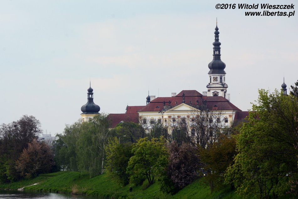 Klasztor Hradisko wznosi się na lewym brzegu Morawy, około 2 km na północny wschód od centrum Starówki. Klasztor stoi na skalnym wzgórzu nazywanym grodziskiem (hradiskiem), co ma związek z miejscowym podaniem, według którego na szycie wzgórza około roku 1030 znajdował się zamek wybudowany przez księcia Brzetysława. Archeolodzy potwierdzają, że miejsce to było zamieszkałe jeszcze przed powstaniem klasztoru, ale co do szczegółów są ostrożniejsi. Tak czy owak, w roku 1078 książę Otton I Piękny sprowadził tu benedyktynów i ufundował klasztor z kościołem. W ciągu swojej historii klasztor był palony przez Tatarów, burzony przez mieszczan, a w końcu doszczętnie zniszczony przez Szwedów. Nowy okazały barokowy budynek zbudowano zaraz później według projektu włoskiego architekta Giovanniego Pietro Tencalli. Od 1802 roku pełni funkcję szpitala wojskowego, ale podobno (nie miałem okazji tego sprawdzić) w sezonie można go zwiedzać. Wejścia o równych godzinach: w soboty (8:00–11:00) i czwartki (14:00–15:00).