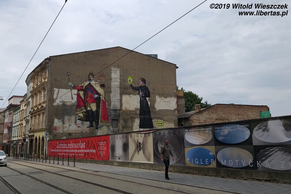 Podczas zwiedzania Ołomuńca można wypatrzeć również kilka murali. Jeden z ciekawszych (ul. Denisova 291/35), przedstawia króla Anglii Edwarda VII robiącego sobie selfie. Obok króla stoi nasza polska noblistka, czyli Maria Skłodowska Curie.