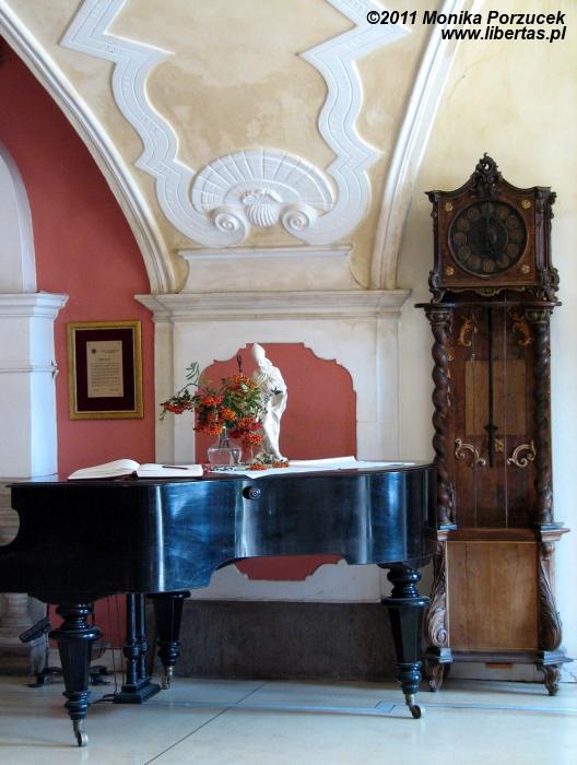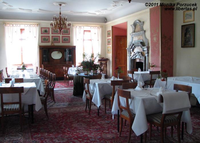 Warto obejrzeć pałac z każdej strony oraz zajrzeć do znajdujących się tuż przy nim zabudowań folwarcznych i ogródka warzywno-ziołowego, skąd pałacowa kuchnia ma zawsze świeże produkty najlepszej jakości. Następnie warto udać się do samego pałacu, gdzie czeka nas miła niespodzianka. Po przywitaniu się z obsługą w recepcji obejrzymy gustownie urządzone wnętrza, odnajdziemy wiele ciekawych dzieł sztuki, zajrzymy do salonu z kominkiem i do biblioteki pełnej starych książek. Pałacowa restauracja i bar są czynne także dla gości z zewnątrz. Opuszczając zamek warto zwrócić uwagę na obrazy i stare zegary, a na koniec wpisać się do księgi gości, czego nie omieszkałam uczynić. Pozostaję pod urokiem tego miejsca. Być może kiedyś tu wrócę, by spędzić w tym miejscu więcej czasu. Tym bardziej, że właściciel ma w planach przystosowanie zabudowań folwarku do celów SPA.