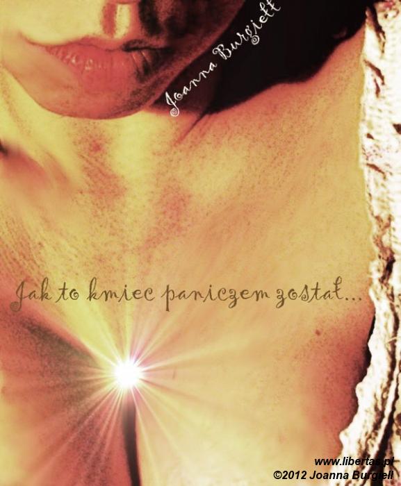Tym bardziej zatem urzekły kmiecia Macieja długie, jedwabiste włosy w złocistym kolorze najlepszego karczemnego piwa (które to skojarzenie Macieja z pewnością nie było bez znaczenia), smukła, rumiana twarzyczka, ozdobiona pąsowymi ustkami w kształcie serca i niewinne oczęta jak dwa błyszczące migdały. Sunął powoli przed siebie ze wzrokiem utkwionym w jej ogromnym, sterczącym biuście, prawie nieosłoniętym przez mocno wydekoltowany stanik. Dreptała tanecznie po śliskim, miejskim bruku, z balią pełną prania pod pachą. „Raj pijaków” – pomyślał zapewne Maciej, uporczywie podążając wzrokiem za mijającą go pięknością i jej nieprzeciętnymi piersiami – „To jest pijacki anioł; jak dobrze być pijakiem!”. Kiedy dziewczyna znikała z pola jego widzenia, odwracał za nią głowę, zapominając chwilowo o reszcie ciała, wciąż idącej do przodu. Taka gimnastyka nie mogła nie zakończyć się upadkiem. Maciej runął plackiem na ziemię, wyrżnąwszy głową o wilgotne kocie łby. Z głębi jego piersi wyrwało się jedynie zduszone „ugh”.