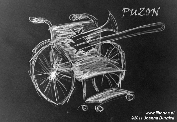 -To znaczy jadę, wiesz, jadę, nie idę – rzucił przez ramię i pojechał chybotliwie po krzywym chodniku. Czekałem aż się wywróci, stary, wyglądał, jakby miał paść na glebę lada chwila. Popychał kółka niezgrabnie, pomyślałem wtedy, że kuśtykanie do tego stopnia weszło mu w krew, że i bez nóg kuśtyka, on po prostu miał to już zakodowane w mózgu.
