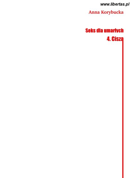 Cisza jest bolesna. Z każdą godziną boli bardziej, zwłaszcza, że rany na ciele już się zagoiły. Nie zrozum mnie źle, to nie tak, że jest cicho. Mieszkam w mieście, a w mieście cisza, nawet nocna, już dawno umarła. To nie taka cisza, nie kojąca, nie wiejska, nie nostalgiczna cisza rodem z utraconego dzieciństwa. Moja cisza jest gorsza, bo piekielna. Ty możesz usłyszeć, wystarczy przyłożyć ucho do ściany, bo dźwięki są, latają sobie samopas w powietrzu, rozchodzą się falą na wszystkie strony, nieważne czy chciane, czy nie. Hałasy, kłótnie, chrapania, życie... Tam za ścianą coś jest. Tylko do mnie już nie dociera, dla mnie jest niesłyszalne, nierealne, nieistniejące. Każde w swojej inności niepowtarzalne, z bliska straszne, niesamowite. Ale to tam, za ścianą. U mnie jest tylko cisza, nieznośna i piekielna. Tylko mnie nie żałuj. Nie chcę litości. Nie potrzebuję.