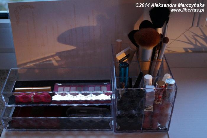 Standardowo cuda do makijażu są trzymane w kosmetyczkach, jednak ma ona swoje wady. Przede wszystkim panuję w niej zawsze nieporządek, a odnalezienie danej rzeczy zajmuje nam czas. Kosmetyczki polecam zabierać na wyjazdy i wakacje.