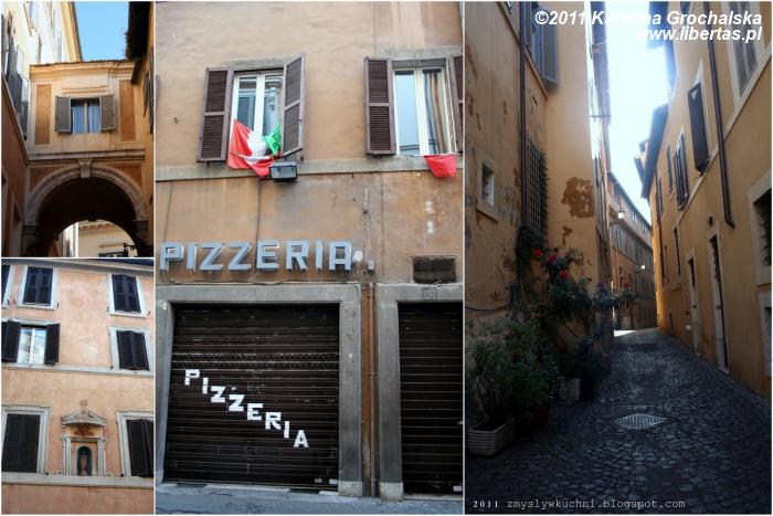 A Rzym? Jak to Rzym. Zabytki na każdym kroku, które na pewno warto zobaczyć, choć na nie same pewnie i miesiąca by nie starczyło, a nasz przygoda z Rzymem skończyła się po dwóch dniach. Jakoś niespieszno nam było do niego wracać. Cała masa ludzi, od których jednak da się uciec. Jest coś takiego w Rzymie, że tłumy skupione wokół Koloseum czy Fontanny di Trevi znikają jeśli odejdzie się dwie uliczki dalej. A tam mury, z których odpada tynk czy farba, odrapane ławki i cisza przerywana odgłosami dnia codziennego: rozkazującym głosem jakiejś gospodyni najpewniej szykującej posiłek, dzwonieniem sztućców, gruchaniem gołębi, wesołością gości oczekujących panny młodej pod kościołem, czy stukotem szpilek wyszykowanej blond pańci z małym pieskiem i torbami ze sklepów największych projektantów.