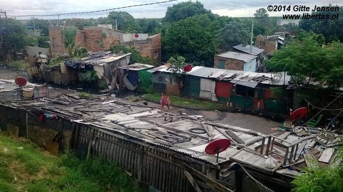 Paragwaj jest krajem zamkniętym wewnątrz lądu, jednak w przeciwieństwie do Boliwii, która również nie ma przywileju posiadania linii brzegowej, jest krajem stosunkowo płaskim. Co ciekawe, wszystkie większe miasta znajdują się na granicach. I tak Asuncion położone jest nad rzeką Paraguay, która jest graniczną rzeką Paragwaju i Argentyny. Nota bene, nad tą właśnie rzeką, w centrum miasta znajdują się stołeczne fawele. Wciśnięte pomiędzy brzeg rzeki, a... uwaga, uwaga: pałac prezydencki, znajdują się prowizoryczne domeczki pokryte blachą falistą, palmowym listowiem i tekturą. Dostępu do faweli pilnuje straż miejska, która skutecznie przegania turystów podchodzących zbyt blisko miejscowej biedoty.
