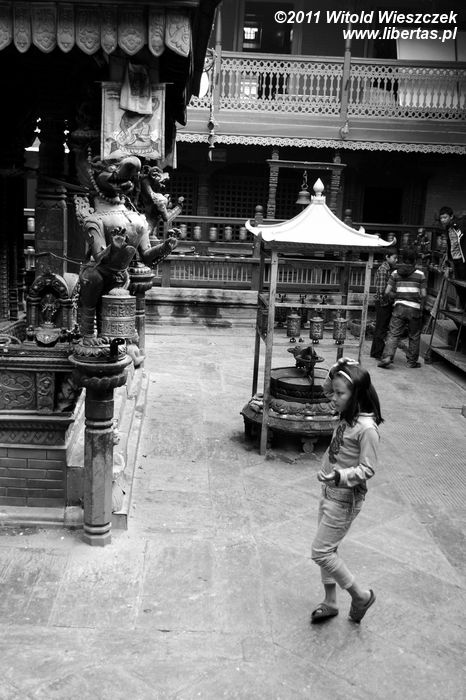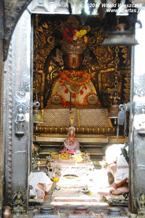Hiranya Varna Mahavihar is a famous Buddhist monastery located circa 200 meters north of the Durbar Square (walking from the north-western corner). Its major part is a beautiful, gold-plated pagoda – the Golden Temple – one of the holiest places for the Nepal Buddhists.