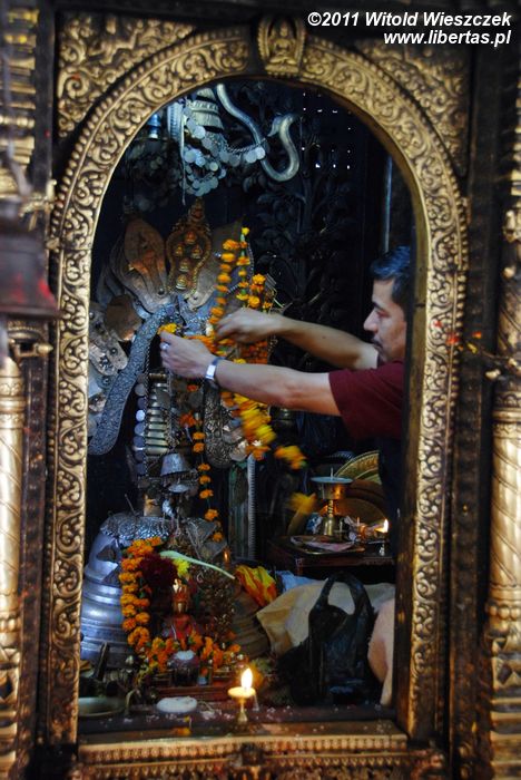 It is surrounded by some smaller temples such as Bhairava or Parvati Temple and many rare, old statues. There are also two public baths in here which are allegedly powered by water from holy oligotrophic lakes of Gosaikunda. I have read that they serve as a place for ritual cleansing baths but what I personally saw was an ordinary daily care with use of soap. One the other hand, it might be also true that each bath in this holy water is a ritual one.