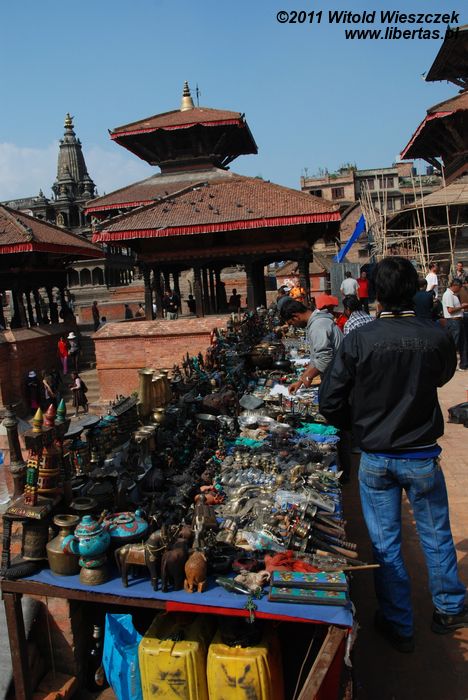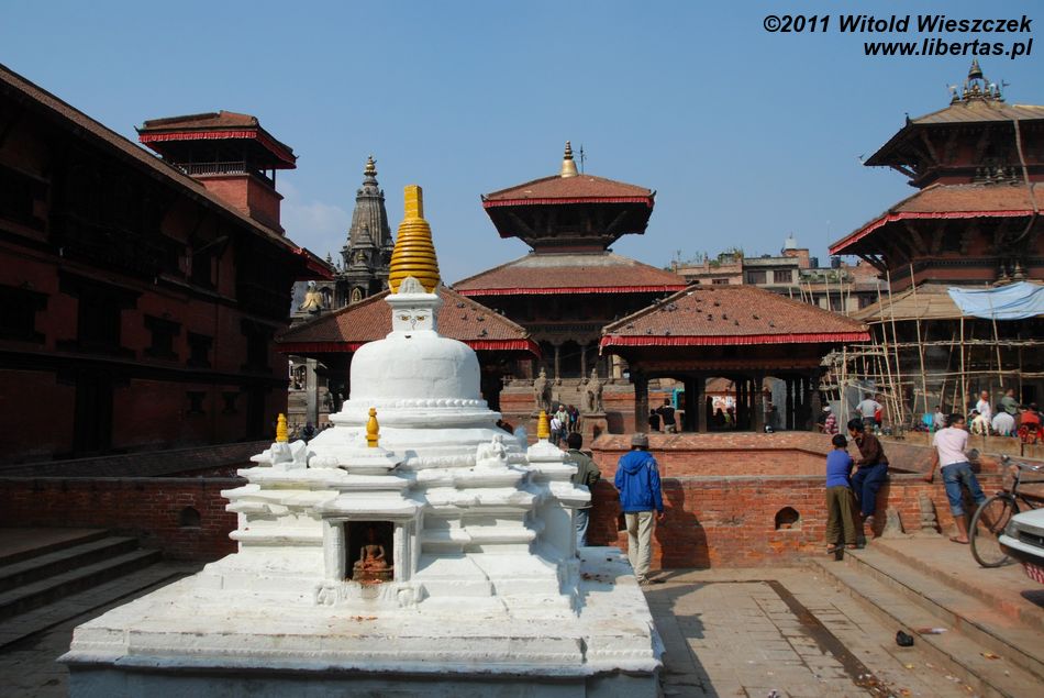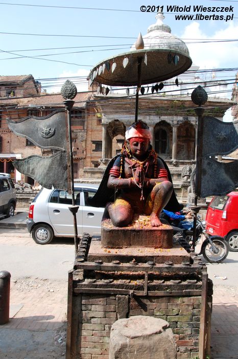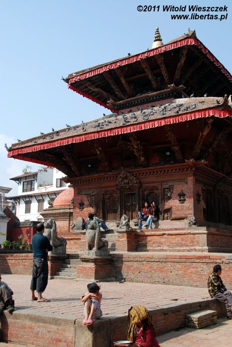 While entering the Royal Square from its eastern side we will see on our left an octagonal Krishna Temple (Chyasim Deval) made of stone. It was built in 1723 by order of the daughter of the king Yoga Narendra Malla. It was supposed to commemorate the eight wives of the father who were cremated together with him on a funeral pyre.