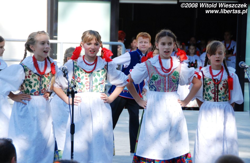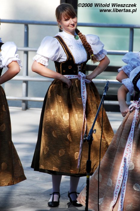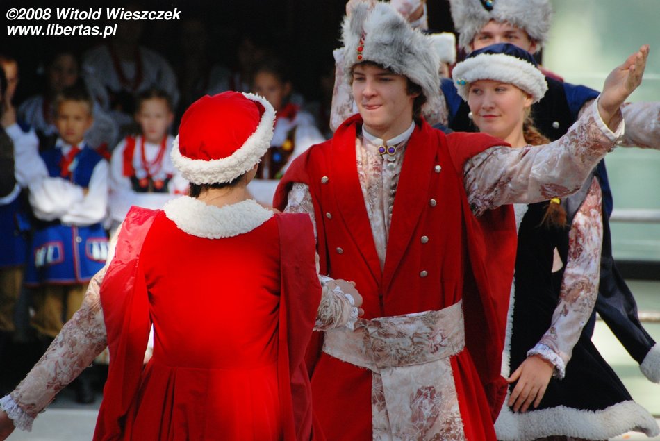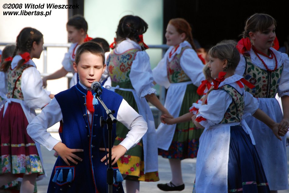 Na początku wystąpiły zespoły prezentujące tańce ludowe, czyli Tyszanie i Karolinka. Najmłodszymi tancerzami z zespołu Karolinka opiekują się panie Ludmiła Stalmach i Maria Ławniczek. Pani Maria opiekuje się również starszym zespołem, czyli Tyszanami.