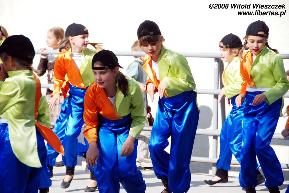 Następnie wystąpiły zespoły tańca nowoczesnego. Na początku Tip Top 1 pani Joanny Sajewicz zaprezentował znany już z wcześniejszych występów układ pod tytułem Wybory miss.