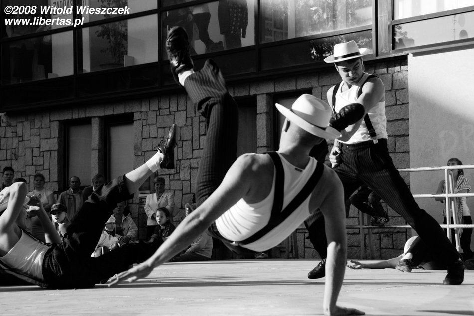 No i na koniec gwóźdź programu – zespół Paka w programie pt. Kasyno. Występ już praktycznie w pełni profesjonalny, z genialną fabularną choreografią Piotra Grzesiaka i oczywiście w świetnym wykonaniu. Widać kunszt zespołu i nie tylko umiejętności taneczne, ale również aktorskie, doceniane zresztą na wielu konkursach! W zasadzie można poczuć się jak na filmie, zaczyna się niewinnie, setką przy barze i występem tańczących pięknych niewiast. Później jest jednoręki bandyta, gra w karty i ostra rozróba zakończona strzelaniną, w której trup ściele się gęsto, a posoka rozbryzguje się na publiczność. Sensacja, komedia, musical, a wszystko to na żywo, za darmo, pod gołym niebem i w świetle słonecznym. Warto było zostać do końca!