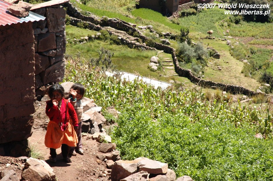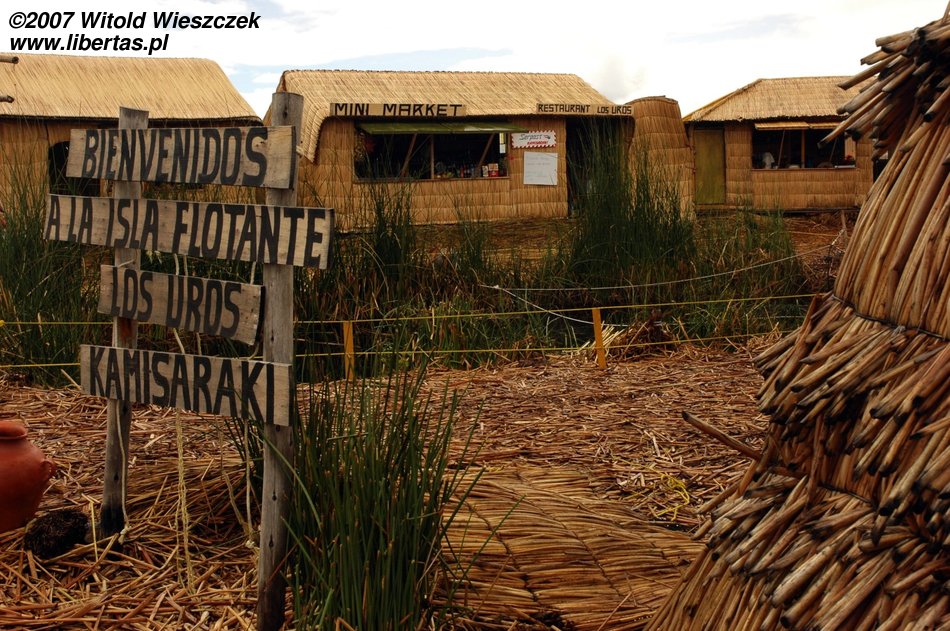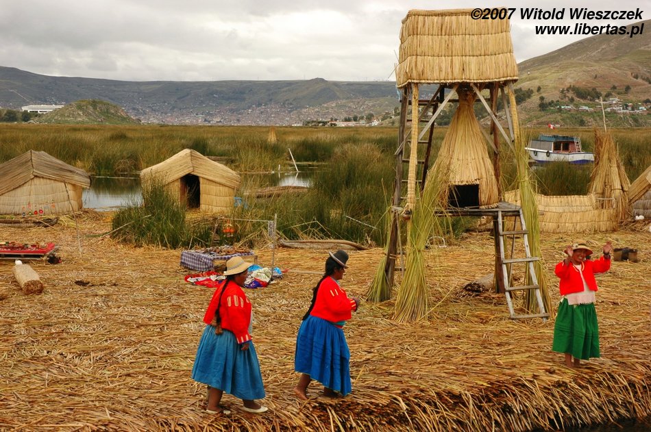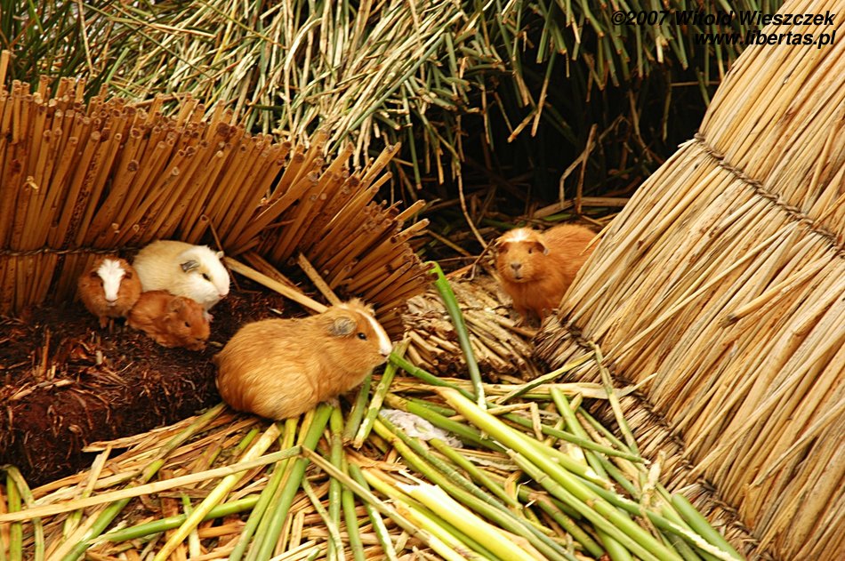 Nasz przewodnik opowiada nam o jeziorze i wyspach, pomagając sobie różnymi zabawnym pomocami naukowymi, daje nam do jedzenia trzcinę i pokazuje baterie słoneczne na pobliskiej wysepce. Taką wysepkę zamieszkuje z reguły jedna rodzina, w razie gdy zachodzi taka potrzeba, wyspy można dzielić, łączyć i oczywiście przesuwać, czyli takie indiańskie klocki lego. Przewodnik nic nie wspomina o świnkach morskich, a ich hodowle odkrywam przy jednym z „gospodarstw”. Ilość jednoznacznie wskazuje na przeznaczenie świnek, ale nie mówcie tego swoim dzieciom.
