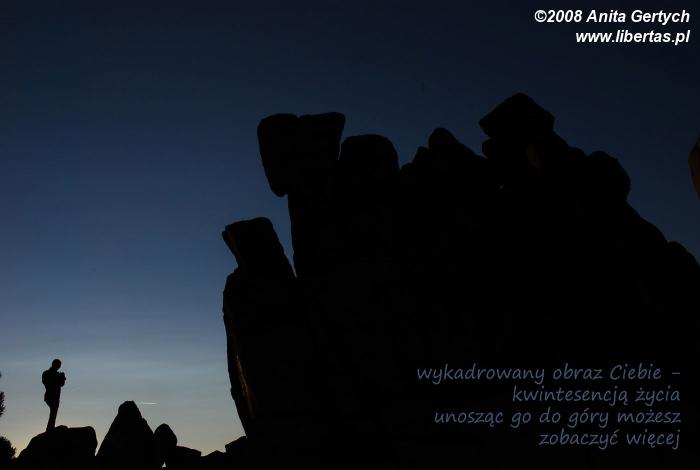PRAGNIENIE MIŁOŚCI moje niebo rozkołysane wszelkimi zmysłami przysłoniło nasze słabości dodając smaku naszej miłości zapach aksamitu słońca rozszedł się po twarzy mego nieba schodząc na rozpalone ciało polany pokrytej łysymi drzewami strachu księżyc uśpiony blaskiem jeziora wyznaje uczucia nocy uśpionej w świetle dnia lecz ja z tęsknoty wyciągam płomień złoty podpalam to pragnienie by mieć duszy ukojenie wieczne zaspokojenie ciała chcę zaspokoić głód słońca mego nieba ślę ci wiatr niemego szeptu snuje on pieśń o pragnieniu naszej miłości kiedyś powrócą lepsze wiatry weń przygnają nasze żagle jęknie niczym pies -serce me ostrzeże inne wilki by wystrzegały się niespełnionej miłości. Dorota Książek