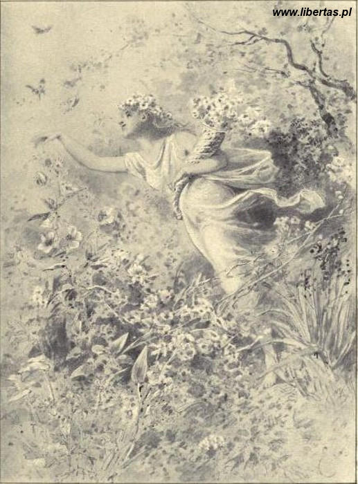 CZERWIEC Pęk kwiatów przez lato do butonierki włożony; W trzcinach na dnie lasów niskopiennych, Pijane słońce, a ptaki intonują wiosennych Hymnów chóralne tony; Na jasnych szczytach, polach i wodach Błękitnym światłem wszystko zalane; Ptasie gniazda, pałace i strzechy słomiane, W nich miłość doskonała obraca swe wrzeciona. W gęstych lasach szmer wód źródlanych; Bryza grających gałęzi rozedrganych; Motyl w kwiatach róży owinięty; Wszystko śpiewa, rusza się, drga, żarem bucha... Nieskończone przemieszczanie! Radości zawierucha! A ich twórca ziemski błogo uśmiechnięty!tłum. Ryszard Mierzejewski