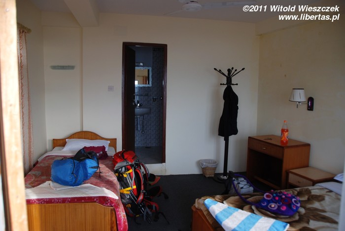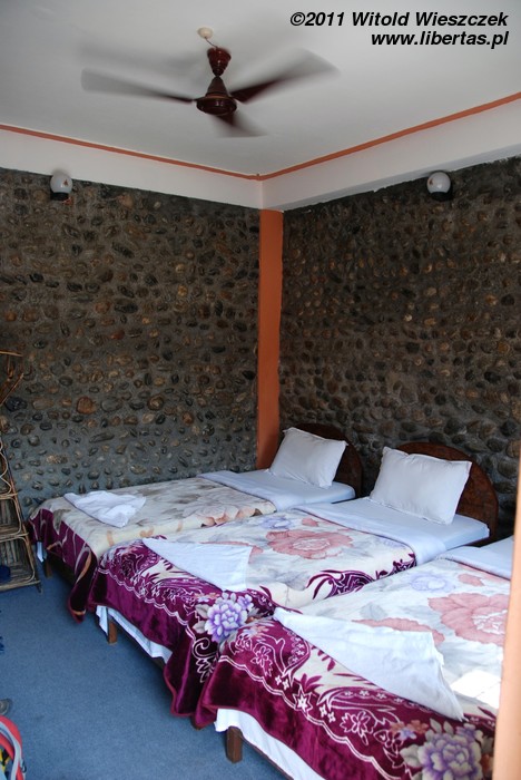 Polecamy również bardzo czyste, ładne, a w dodatku tanie pokoje w hotelu Panas. Znaleźliśmy go przypadkiem krążąc po Pokharze w poszukiwaniu taniego noclegu. Obejrzeliśmy wiele pokoi, niektóre były bardzo tanie, ale niezbyt zachęcały do spędzenia w nich nocy, inne bardzo ładne, ale kosztowały w okolicach 20–30 $ za pokój. Trzyosobowy pokój z łazienką w hotelu Panas spodobał nam się od pierwszego wejrzenia, a cena 700 Rs. (28 zł) za pokój czyniła go chyba najkorzystniejszym wyborem, biorąc pod uwagę stosunek jakości do ceny.
