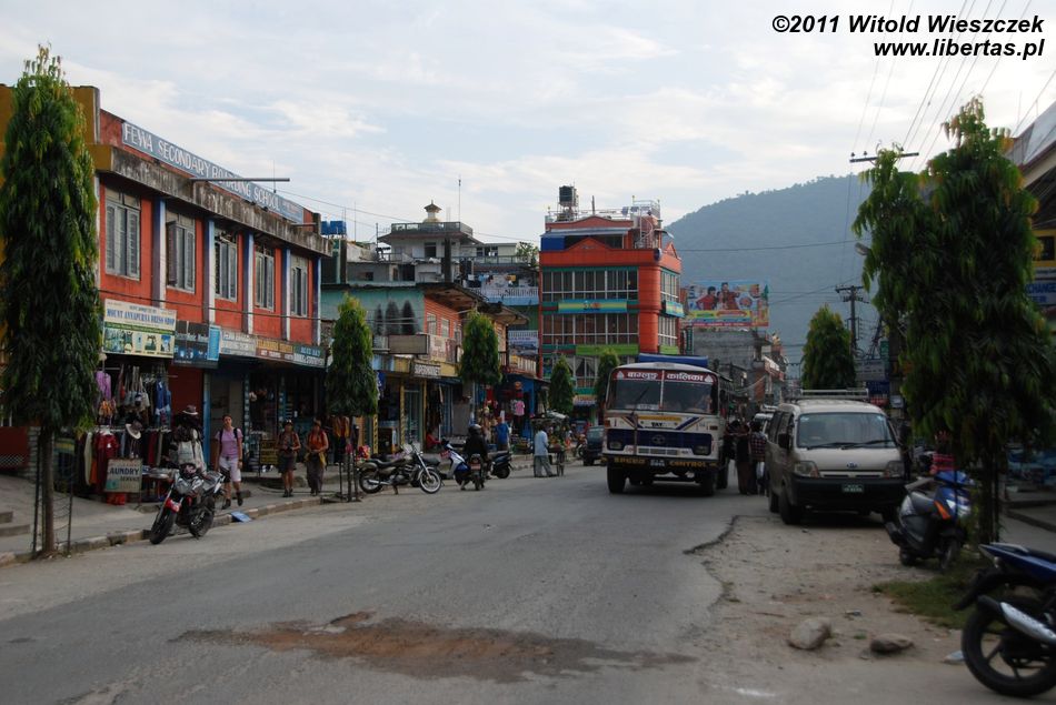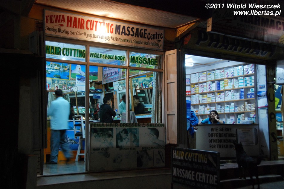 W porównaniu do zakurzonego Katmandu, Pokhara przypomina trochę zaniedbany kurort. Trochę prowizoryczny i w rozsypce, ale za to bardzo ładnie, malowniczo położony. Jak wszędzie w Nepalu mnóstwo tu kontrastów. W jeziorze Fewa można zobaczyć zarówno odbijające się piękne góry, jak i pływające śmieci, a kolorowe wystawy sklepowe i pachnące jedzeniem knajpki sąsiadują z zaśmieconymi, ponurymi ulicami i odrapanymi ścianami domów przykrytych przyciśniętą kamieniami blachą falistą.