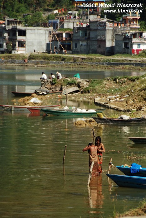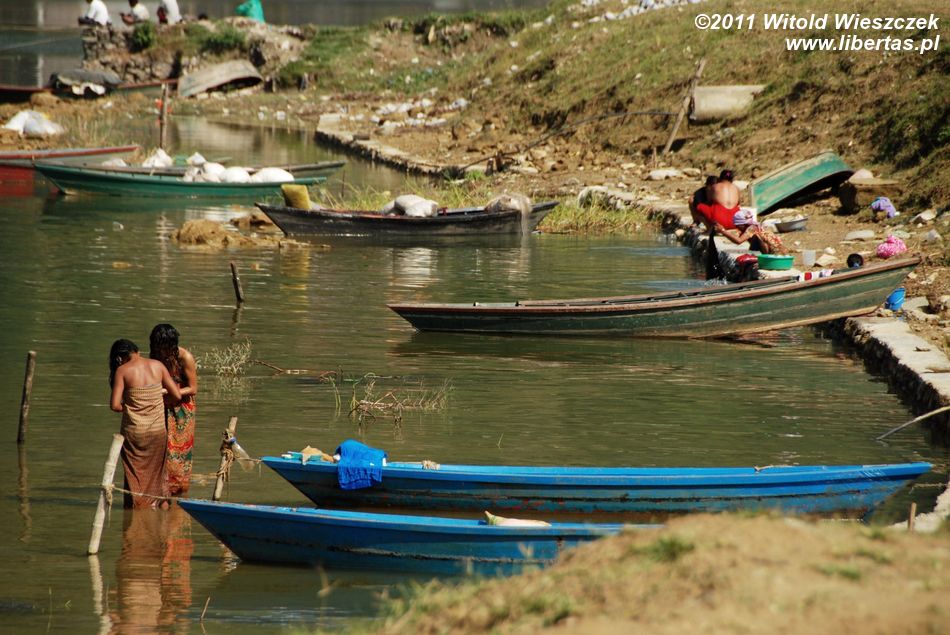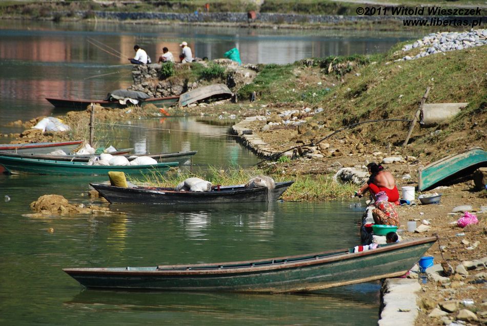 Jezioro to dla nas żaglówki, kajaki, kąpiele, opalanie, pływanie, jednym słowem rekreacja. Tutaj jezioro to przede wszystkim miejsce, gdzie robi się pranie i poranną toaletę. Dwie kobiety zanurzone po kolana w wodzie myją swoje piękne, długie, czarne włosy, kąpią się, myją sobie wzajemnie plecy. Kawałek dalej ktoś łowi ryby, podczas gdy my obserwujemy wszystko z drewnianej wiaty na palach, sącząc leniwie piwo Nepal Ice.