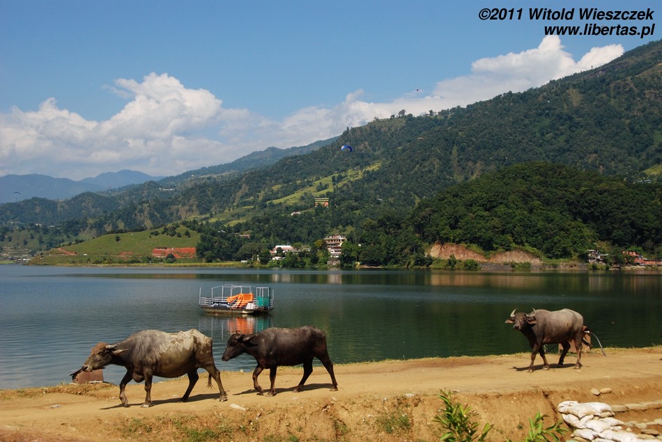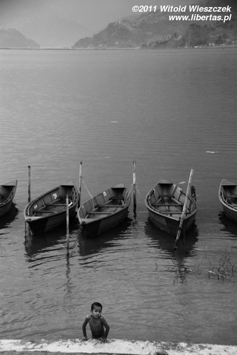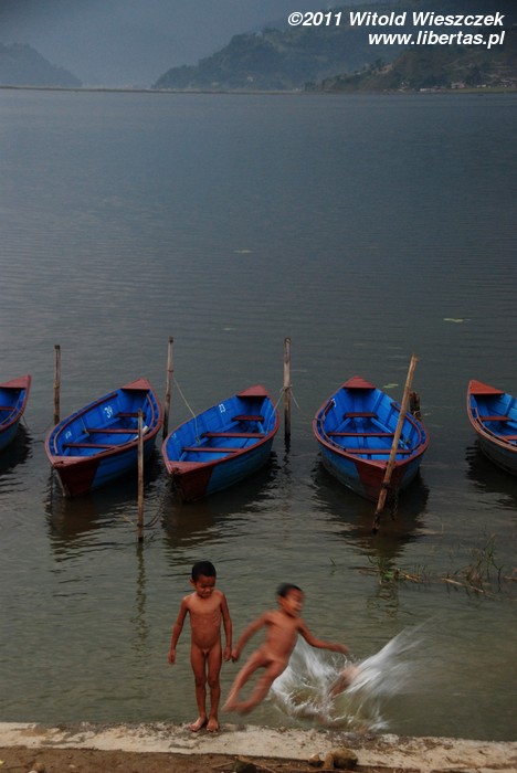 Idące leniwie brzegiem jeziora Fewa krowy, nie mają łańcucha, nie mają poganiacza... Idą gdzie chcą. Są święte. Dzieci bawią się pozostawione całkowicie bez opieki. Jakiś kilkuletni chłopczyk trenuje skoki do wody z półobrotu. Najwyraźniej zadowolony z siebie, w stroju Adama, raz po raz wpada z pluskiem do jeziora. Uśmiecha się do nas. Nie wygląda, żeby mu się działa krzywda. A moje dziecko, idąc rano do przedszkola szczęśliwe na pewno nie jest, choć ubranie ma czyste a i opiekę fachowej i bardzo sympatycznej kadry zapewnioną.