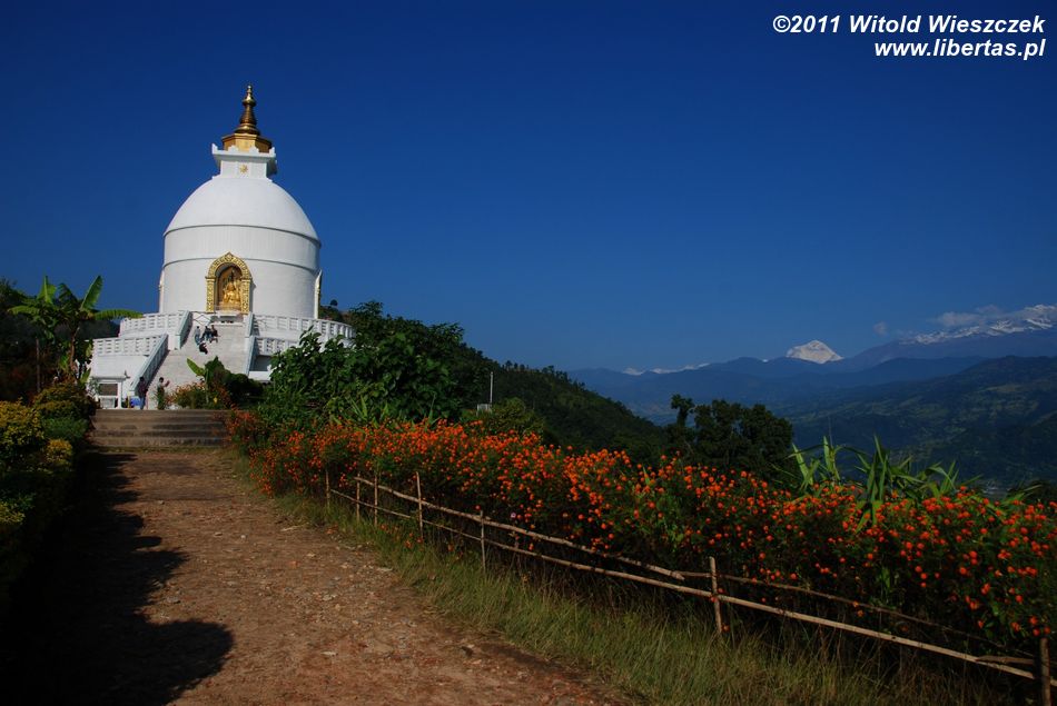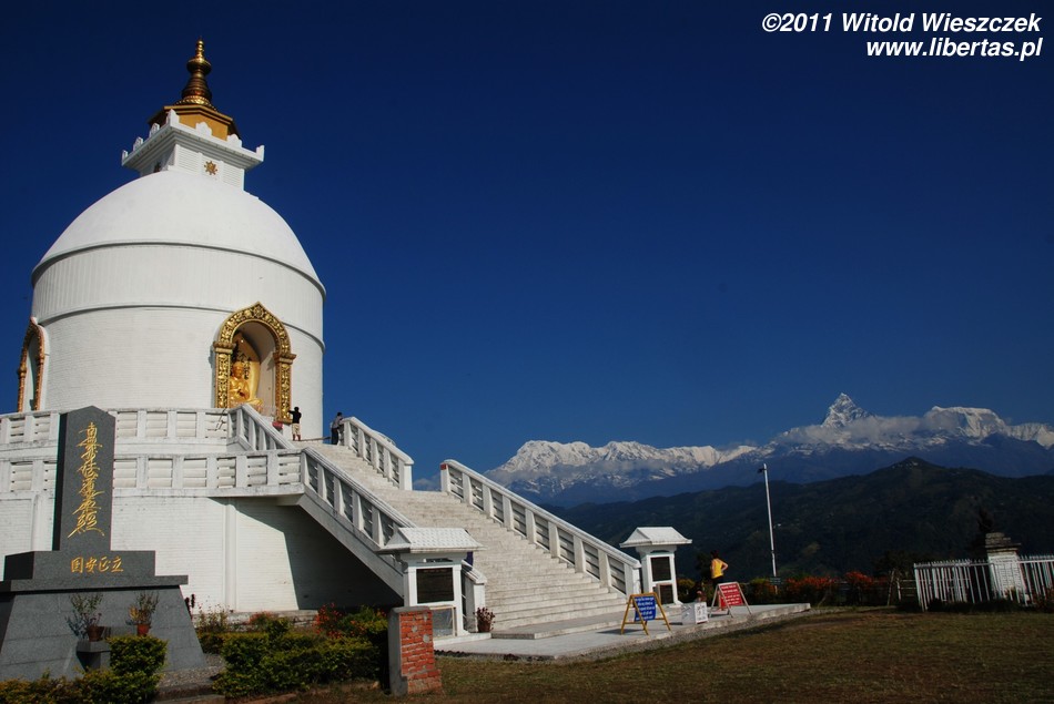 Dzięki temu, że stupa stoi na wzgórzu, na południowym brzegu jeziora Fewa (Phewa Tal), łatwo jest ją wypatrzyć i do niej trafić, a przy dobrej pogodzie roztacza się z niej wspaniały widok na miasto i oczywiście dumne szczyty Himalajów. Warto wybrać się tu rano, a jeśli aura będzie dla Was łaskawa, to podziwiana z tego miejsca panorama na pewno na długo wryje Wam się w pamięć.