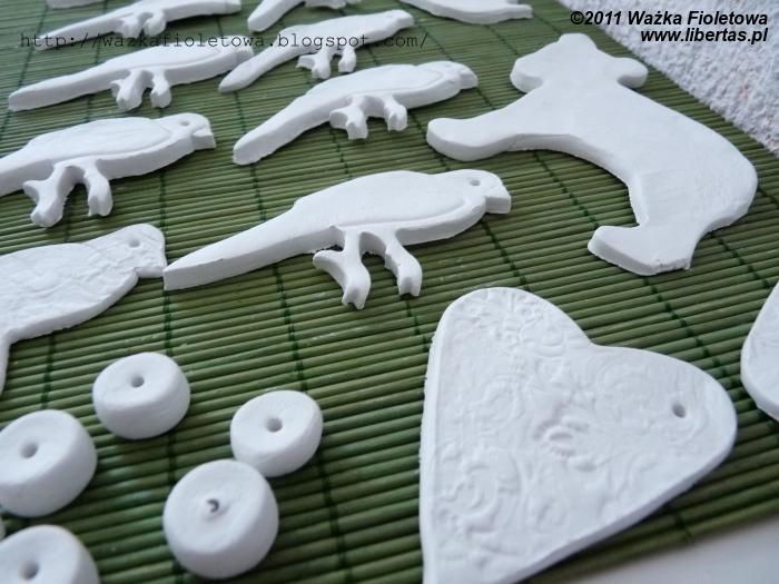 Gdy planowałam, cóż pojawi się w kolejnym „pomyśle na…”, stawiałam na wiosenne wariacko kolorowe ozdobniki. Ostatecznie wyszło biało – bo mnie ta biel zaskoczyła, zachwyciła i powaliła. Ale to Wam zostawiam decyzję dotyczącą tego, jak wykończycie swoje magnesy – i czy będą w ogóle to magnesy. Mnie powala ogrom pomysłów na masę gipsową Fimo Basic. Dla mnie jej zaletą jest fakt, że zwyczajnie twardnieje po wyschnięciu. Bez pieczenia, gotowania – ot, należy pozostawić do całkowitego wyschnięcia.