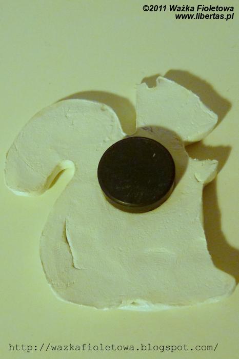 Ponieważ te ‘gipsowe’ twory dla mnie nie wszystkie skończą jako magnesy - wykańczając dodałam im także otworki, by możliwe było ich zawieszenie – np. jako ozdoby prezentów albo w pokoju.