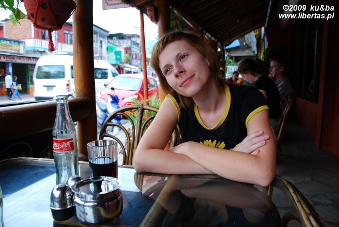 Zaciekawieni dochodzącymi nas, mocno transowymi dźwiękami bębnów, zbaczamy do maleńkiej knajpki tuż przy rybackiej przystani. Jej klimat od razu przypada nam do gustu. W środku garstka uśmiechniętych ludzi: jakiś rozczochrany Europejczyk ćwiczący pod okiem Gospodarza lokalu swój rzeźbiarski warsztat, nepalsko-japoński duet intensywnie eksploatujący perkusyjny instrument, młodziutka Pani Gospodarzowa bawiąca dzieci oraz przyozdabiająca czoła przybyszów znakiem tika, no i my. Rozsiadamy się wygodnie, zagryzamy chłodne piwko przyniesionym nam właśnie darmowym poczęstunkiem i bez reszty oddajemy się nastrojowi tego iście hipisowskiego przyczółka. Please, join us, my friends