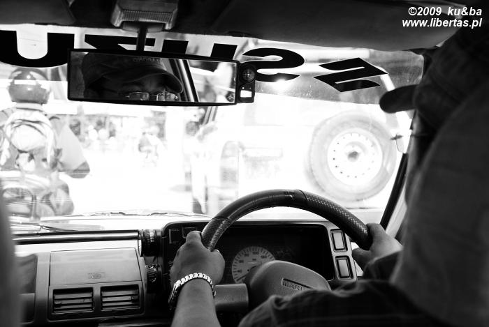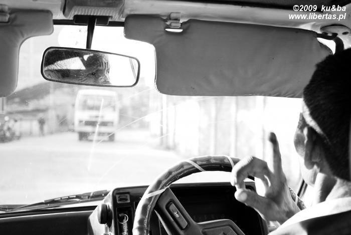 Na wczorajsze zakupy roztrwoniliśmy resztkę naszego przeznaczonego na nepalską przygodę budżetu. W portfelu zostało nam zaledwie 300 rupii – tyle powinno wystarczyć, by dostać się taksówką na lotnisko. Oficjalnie koszt takiego przejazdu wynosi, co prawda, 100 rupii więcej, ale jesteśmy w Nepalu już na tyle długo, by wiedzieć, że na drodze grzecznych negocjacji każdą cenę wyjściową zbić można tutaj o co najmniej dwadzieścia pięć procent. Zgodnie z przewidywaniami pierwszy napotkany taksówkarz szybko godzi się na zaproponowaną mu przez nas sumę. Pakujemy się do białego Suzuki Maruti i ruszamy w nasz ostatni kurs po Kathmandu.