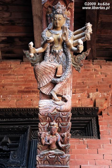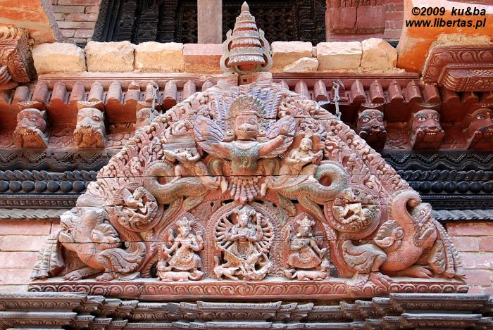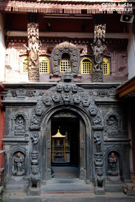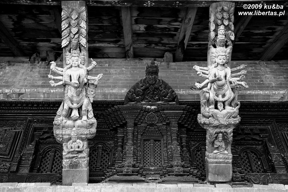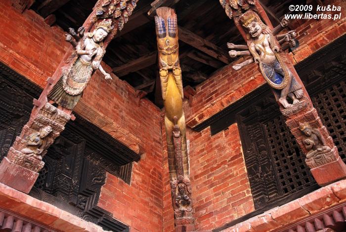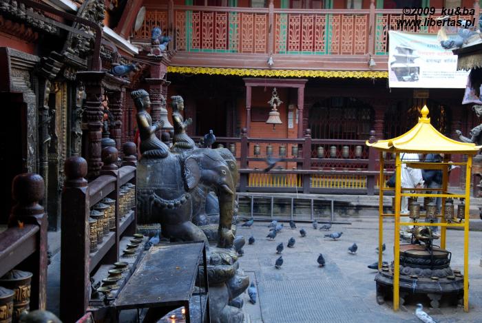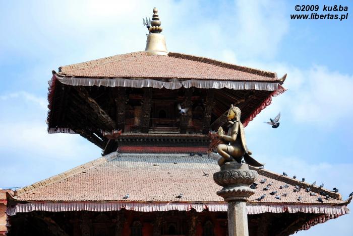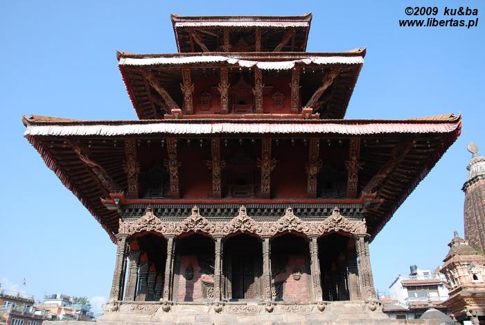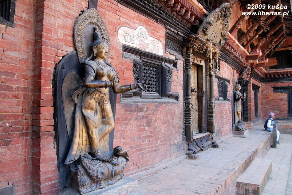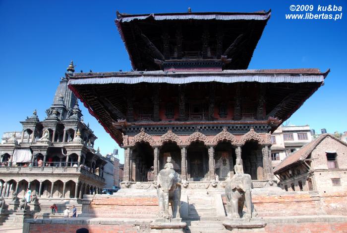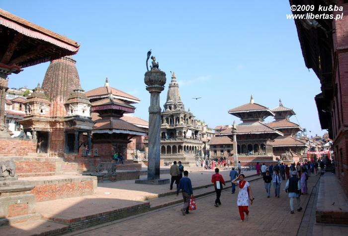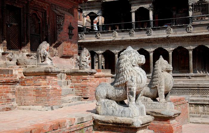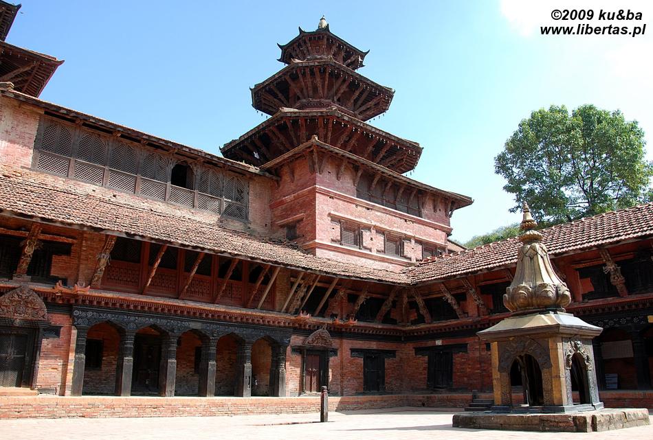 Centralną budowlą Durbar Square jest Pałac Królewski (Royal Palace). Jego budowę rozpoczęto już w czternastym stuleciu, aby ostateczny kształt nadać mu w połowie wieku siedemnastego. Wrażenie robią na nas zarówno jego trzy dziedzińce - Mul Chowk, Sundari Chowk, Mani Keshar Chowk, jak i najwyższa pałacowa część – trzystopniowa pagoda Degutale, niegdyś prywatne miejsce modlitw królów z dynastii Mallów, założycieli Patanu. Kontynuujemy przechadzkę. Bardzo podoba nam się poświęcona Krisznie, kamienna świątynia Krishna Mandir – chyba najsławniejsza z budowli Durbar Square, ale na równie długo zatrzymują nas też pozostałe miejsca kultu – m.in. Hari Shankar, Jagannarayan, Bishawanth Mandir, Bhimsen Mandir, Bhai Dega oraz wznoszące się wysoko pomniki Hanumana, Ganesha, Narsimhy, Garudy i Króla Yoga Narendry Malla. W ciągu kilku godzin wielokrotnie okrążamy plac. Zachwyt nad tym wyjątkowym miejscem nie opuszcza nas ani na moment.