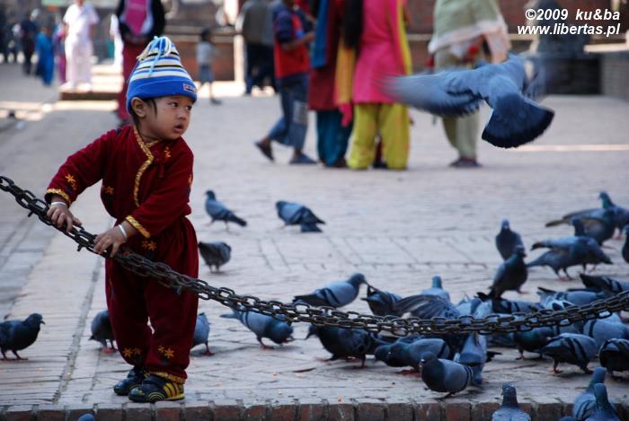 Zwiedzanie rozpoczynamy od wybudowanej w trzynastym wieku Złotej Świątyni (Hiranya Varna Mahavihar), która uchodzi za jeden z najpiękniejszych na świecie zabytków buddyzmu. Chwilę później podziwiamy już Kumbeshwar – sięgającą czternastego wieku, poświęconą Sziwie, pięciostopniową pagodę. Jesteśmy oczarowani, ale tak naprawdę na kolana rzuca nas Patan dopiero gdy odkrywamy jego centrum zwane, podobnie jak w przypadku Kathmandu, Durbar Square. Główny plac w Patanie jest wyraźnie mniejszy niż w stolicy, ale naszym skromnym zdaniem znacznie piękniejszy. Nigdy wcześniej nie byliśmy w miejscu, w którym na tak małej powierzchni znalazłoby się tak wiele architektonicznych arcydzieł.