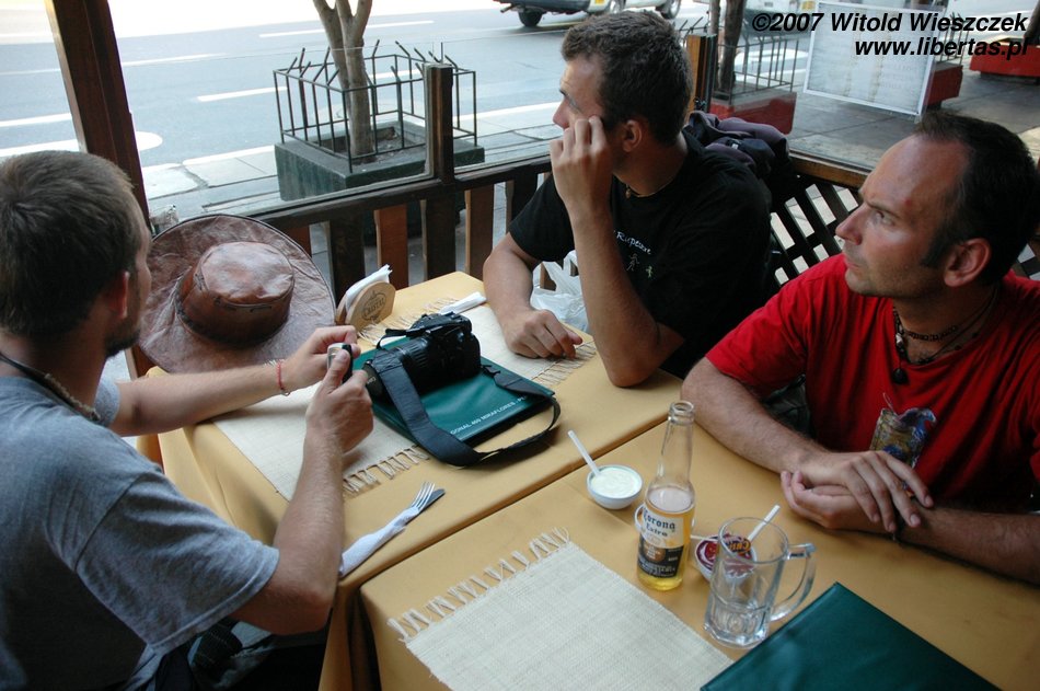 Na lotnisku przepakowujemy rzeczy i idziemy na odprawę, jak się okazuję, jesteśmy za późno! To znaczy odprawa się jeszcze nie skończyła, ale w samolocie nie ma już miejsc! Otóż linie lotnicze mają w zwyczaju sprzedawać więcej biletów, niż mają miejsc w samolocie, czyli kto pierwszy ten lepszy! Najpierw nie mogłem w to uwierzyć! Następny lot mamy we wtorek, a przecież w środę mam być w pracy! Gdyby nie obowiązki, to pewnie byśmy zostali, bo linia fundowała nam pobyt z wyżywieniem w czterogwiazdkowym Sheratonie! My jednak poprosiliśmy o to, by znaleziono nam inne połączenie. O 1:30 mamy lot do Caracas!