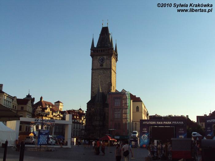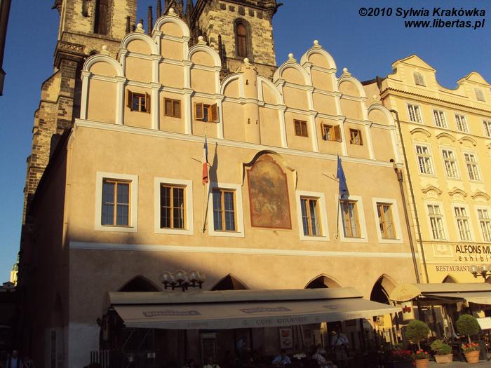Na rynku znajduje się gotycki Ratusz Staromiejski (Staroměstská radnice), któremu początek dała w 1338 roku narożna kamienica. W 1364 roku dobudowano dzwonnicę o wysokości 66 metrów. Obecnie można tutaj zawrzeć ślub cywilny oraz brać udział w wystawach artystycznych. Z ratuszowej wieży można podziwiać Wełtawę i panoramę Pragi. Główną atrakcją ratusza jest zegar Orloj. Wraz z wybiciem pełnej godziny rozpoczyna się przedstawienie z udziałem umieszczonych w zegarze drewnianych figur.