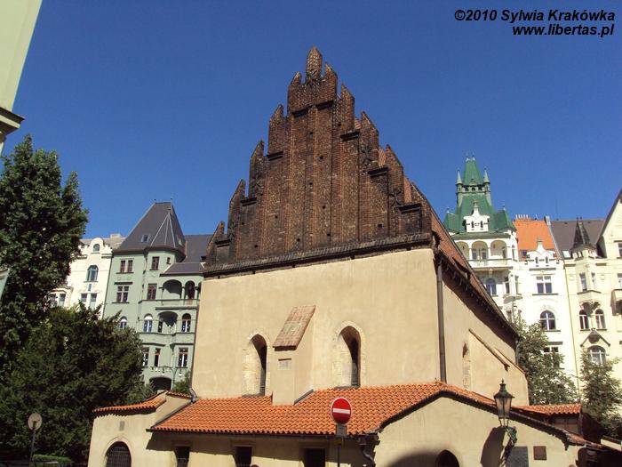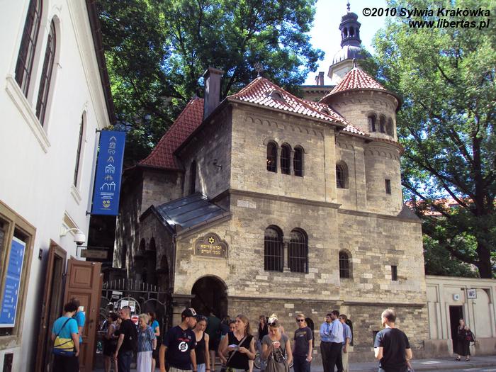 Synagoga powstała w 1275 roku i jest najstarszą synagogą w czeskiej stolicy. Wyróżnia się na tle innych budowli spadzistym dachem. Nigdy nie została przebudowana, zachowała więc oryginalny kształt. Przetrwała drugą wojnę światową, paradoksalnie dzięki Hitlerowi (obiekt sakralny miał być częścią „Egzotycznego Muzeum Wymarłej Rasy”).