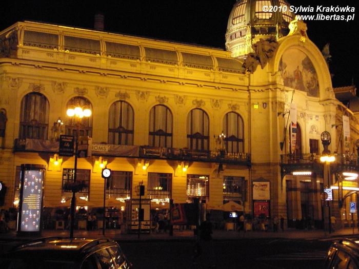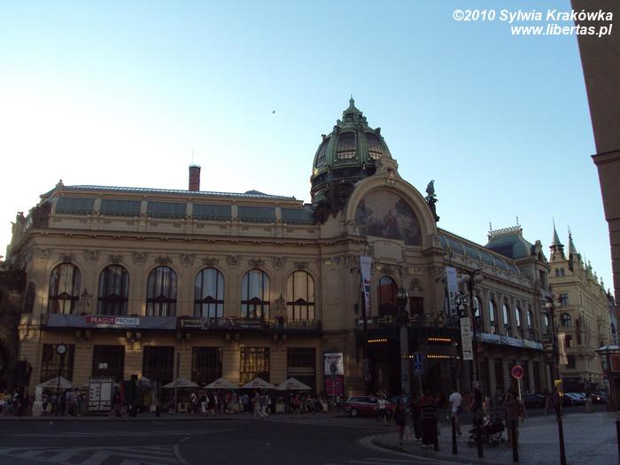 Budynek powstał w XX wieku. Został wybudowany w stylu secesyjnym. W jego wnętrzu znajdują się: kawiarnia, restauracja, sala koncertowa. To właśnie tutaj w 1919 roku, proklamowano wolną Czechosłowację. Dom Miejski stoi w niedalekiej odległości od słynnej Bramy Prochowej. Co ciekawe, sam budynek świecki został zbudowany na fundamentach Pałacu Królewskiego.
