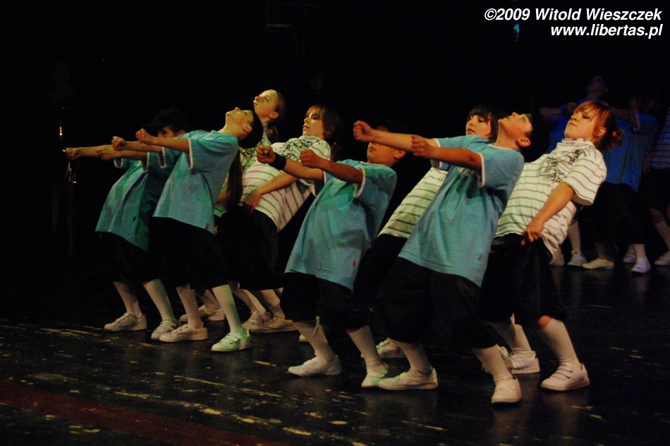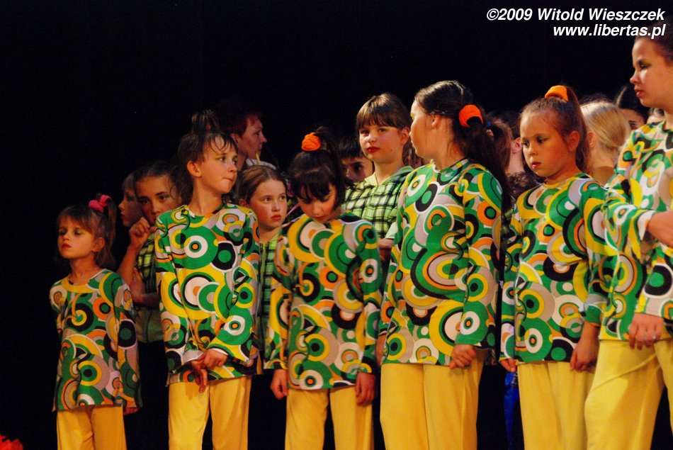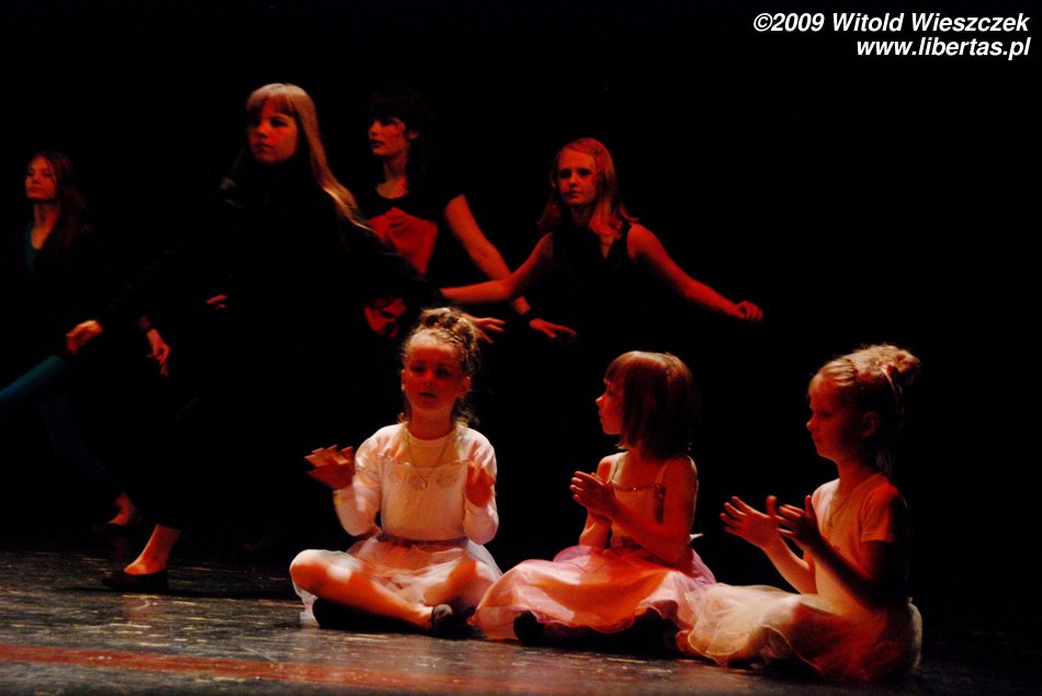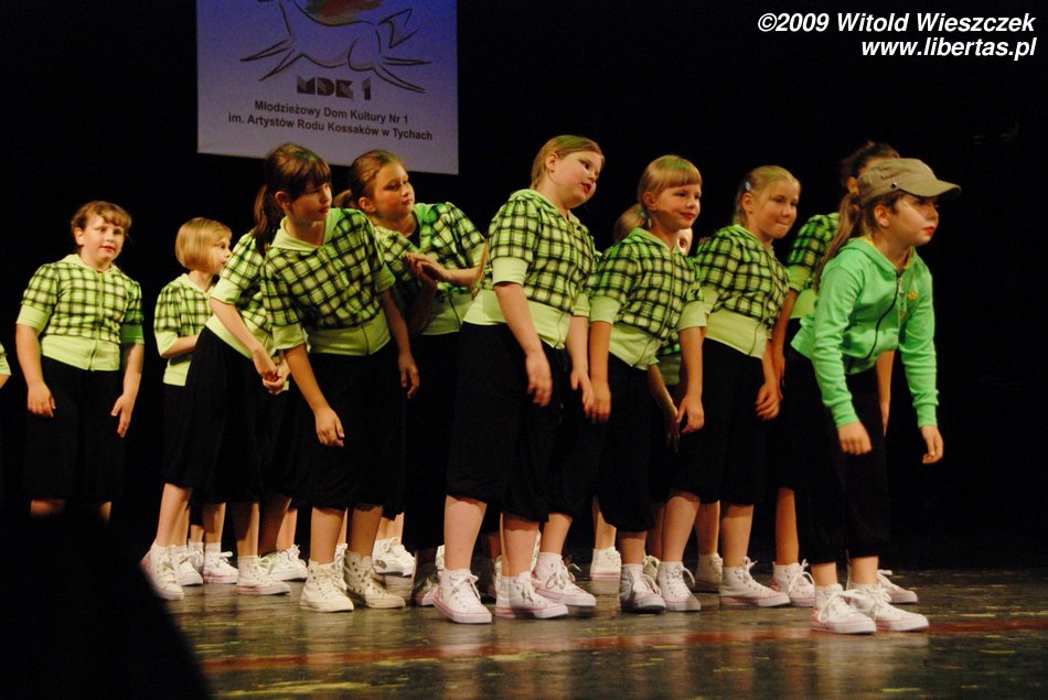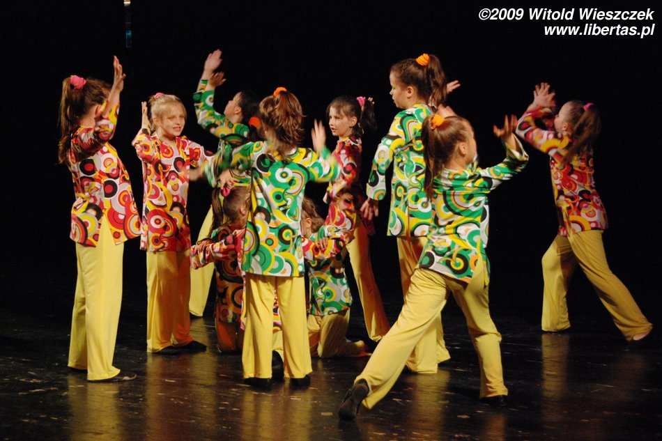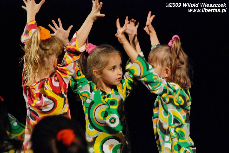Po nich wystąpili podopieczni pani Marii Ławniczek, czyli bardzo zakręcony i pląsający Piruet w choreografii pt. Magiczny taniec. Z bajkowej atmosfery wyrwały nas dźwięki afrykańskich bębnów, na których energicznie rytm wybijają chyba najmłodsi wychowankowie MDK tańczący w zespole Gatys (w zeszłym roku dzieci występowały pod nazwą Tyski Gaiczek). Od tego roku maluchami wspólnie opiekują się pani Agnieszka Gut i niezmordowany pan Piotr Grzesiak. Tytuł występu: W rytmie bębnów.