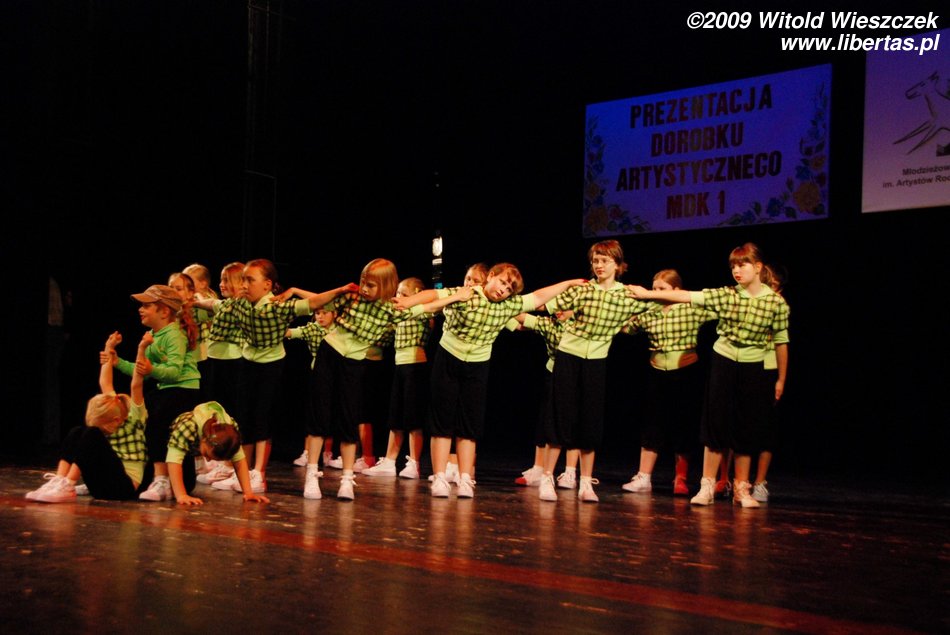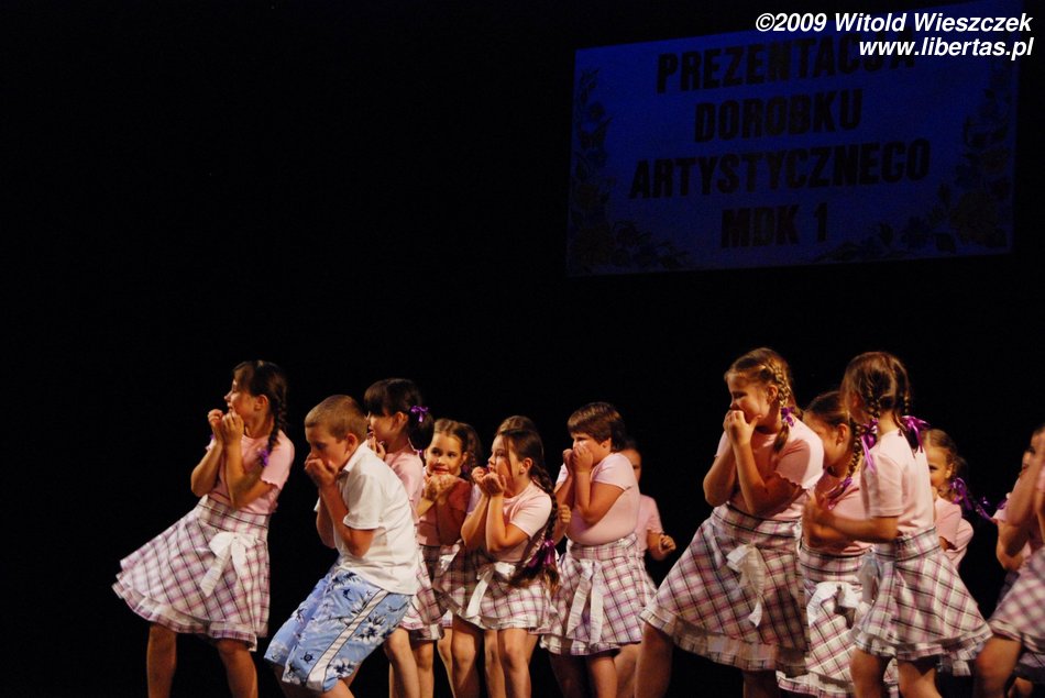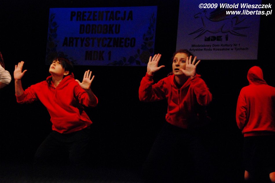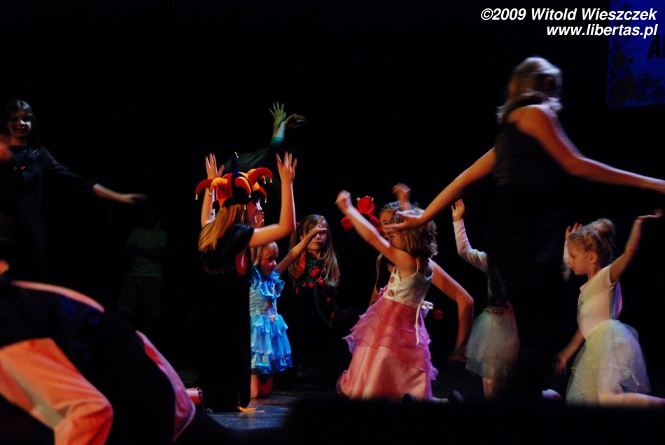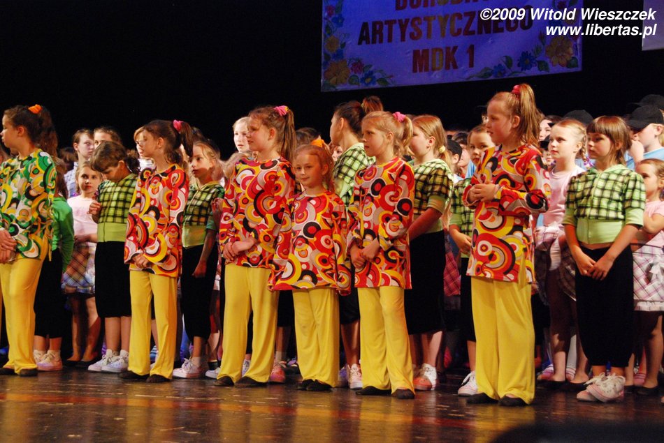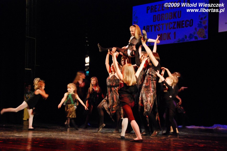 Po nich wystąpili podopieczni pani Marii Ławniczek, czyli bardzo zakręcony i pląsający Piruet w choreografii pt. Magiczny taniec. Z bajkowej atmosfery wyrwały nas dźwięki afrykańskich bębnów, na których energicznie rytm wybijają chyba najmłodsi wychowankowie MDK tańczący w zespole Gatys (w zeszłym roku dzieci występowały pod nazwą Tyski Gaiczek). Od tego roku maluchami wspólnie opiekują się pani Agnieszka Gut i niezmordowany pan Piotr Grzesiak. Tytuł występu: W rytmie bębnów.