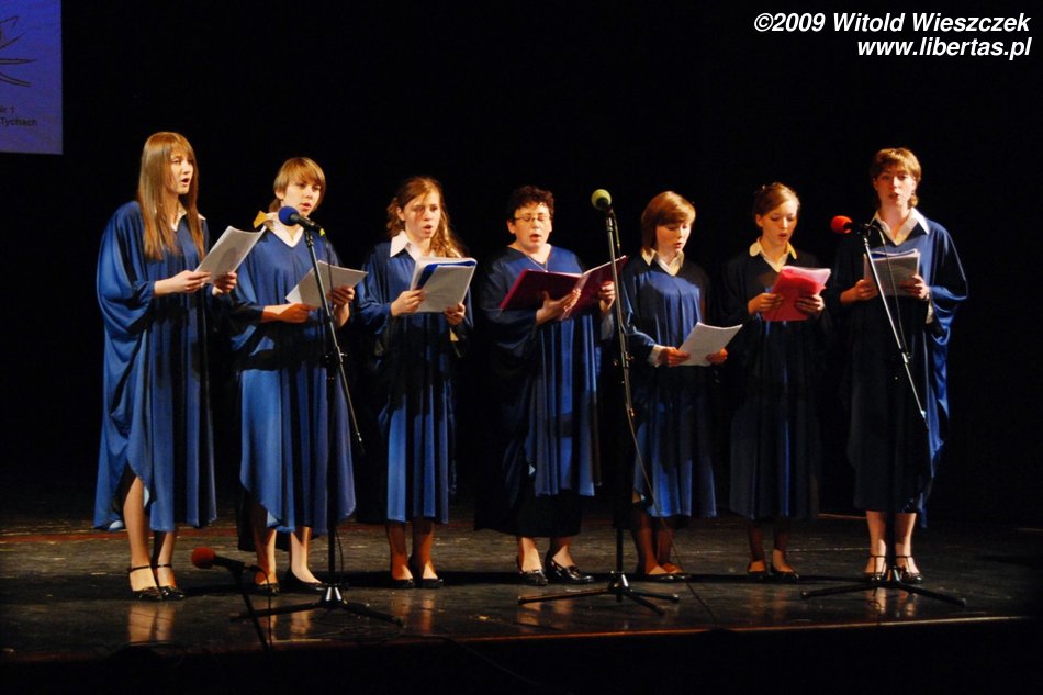 Po występie bardzo młodych, ale przecież już całkiem doświadczonych artystów z Kropy, na scenie pojawił się chórek Cantemus i odśpiewał kilka utworów. Po nim wyszedł Feeling – zupełnie nowy zespół w stajni tyskiego MDK. Naprawdę nie rozumiem tej idiotycznej mody na anglojęzyczne nazwy, podobno Polacy nie gęsi? No ale mniejsza o to. Zespół ćwiczy od niedawna, bo od października ubiegłego roku. Prowadzą go wspólnie pani Ksenia Chmielarz i pan Maciej Gruchlik. Na swoją pierwszą galę w tyskim teatrze zespół przygotował występ pod gorącym tytułem Kubański sen.