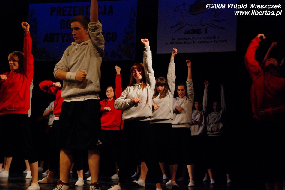 Kurtyna idzie w górę i całkiem bez zapowiedzi zaczyna się występ jakiegoś zespołu. Jak to tak? Bez słowa wprowadzenia? No to ja powiem. Rozpoczyna się właśnie prezentacja dorobku artystycznego Młodzieżowego Domu Kultury w Tychach, a przed Państwem zespół Kropa prowadzony przez pana Piotra Grzesiaka. Układ nazywa się Wielkie wagary1.